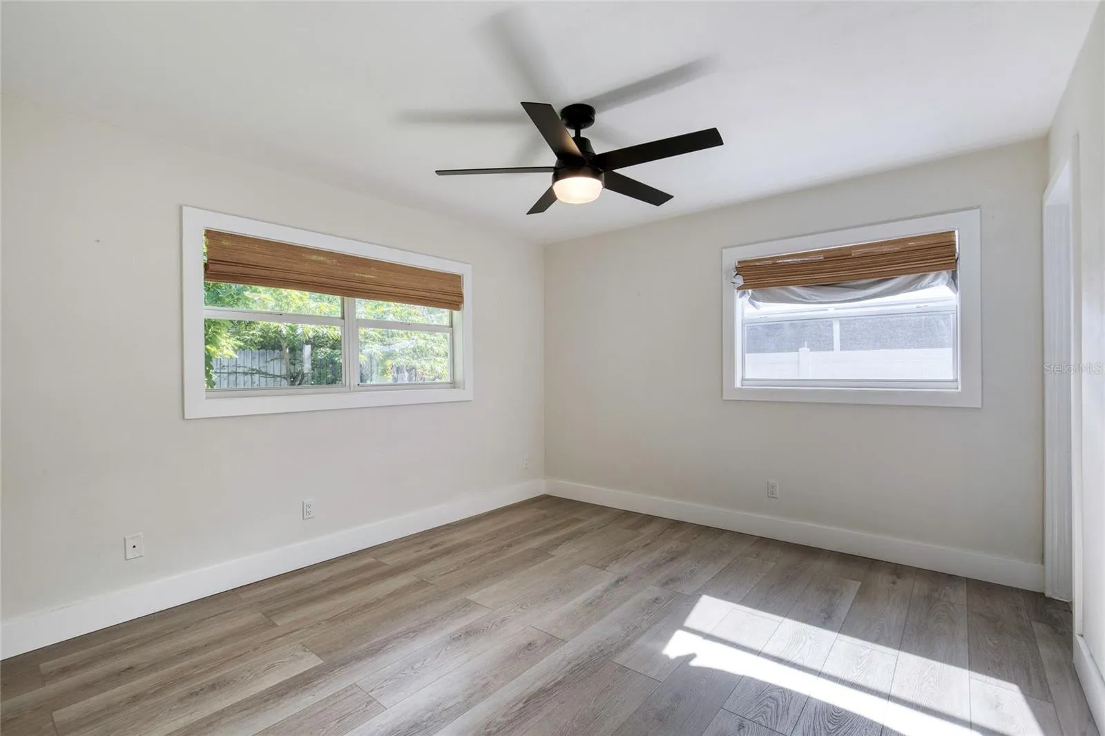 Inside, you’ll appreciate the luxury vinyl flooring throughout, complemented by sleek 5.5″ baseboards. The primary suite is a true retreat, featuring custom closet built-ins and a stunning ensuite bath with a walk-in shower and LED wall niche you have to see to believe. Down the hall, you’ll find another beautifully remodeled full bath and ample storage space throughout.