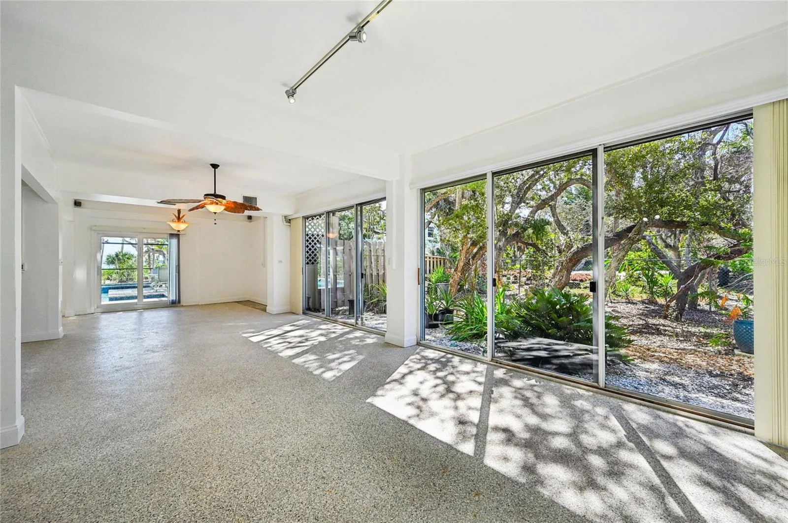From sunrise on the bay to sunset on the gulf, this beautiful Manasota Key home offers the ultimate Florida lifestyle on nearly 1.5 acres. A long private driveway lined with majestic oaks leads to a two-story, three-bedroom, two-bathroom retreat with deeded beach access. The home is being sold turnkey furnished, so you can simply bring your suitcase and start living the relaxed island life. Stone accents and double doors set the tone for its curb appeal, while spacious elevated front and back porches invite you to enjoy the views from every angle. The elevator makes access to the main living level a breeze. Inside, vaulted ceilings and gleaming wood floors create a bright open feel in the great room, and multiple sliding glass doors frame the peaceful bay views. The dining area has panoramic views of Lemon Bay where you can enjoy watching the boats go by. The kitchen blends coastal style with function, featuring shaker-style wood cabinetry, quartz countertops, a glass tile backsplash, and a breakfast bar. The primary bedroom opens to the rear porch, perfect for morning coffee overlooking the water, and includes a walk-in closet with built-ins, and the en-suite bathroom features a double vanity and a large walk-in shower. Guest bedrooms feature reach-in closets, and the upstairs guest bathroom includes a single vanity and a tiled shower/tub combo. The interior laundry room is thoughtfully designed with cabinetry, shelving, and a utility sink. Downstairs offers a large bonus area with epoxy flooring, 9-foot ceilings, and three sets of sliding glass doors leading to the pool and backyard. This space is ideal for a gym, game room, or extra guest area. Outdoor living shines here, with a 2016 saltwater heated pool, sundeck, and spa surrounded by paver decking and enclosed by a screened lanai for comfort. Beyond the screened area, a charming path winds toward the bay, where a firepit, bench, and fountain create the perfect place to relax. The dock was rebuilt in 2025 and is ready for your boat, with a lift that can be repaired or replaced to fit your needs. From this location, getting out on the water is simple and convenient. Head south to Stump Pass or Boca Grande for a day of boating and fishing, or cruise north toward Venice Beach and Midnight Pass and enjoy many waterfront dining options along the way. This home includes thoughtful upgrades such as restored solid maple flooring, cedar construction on concrete pilings, impact windows and doors, a whole-house generator and buried 500 gallon propane tank, double garage spaces, and a circular driveway. 6091 Manasota Key Road is more than a home; it’s a lifestyle surrounded by the beauty of Lemon Bay and the Gulf.