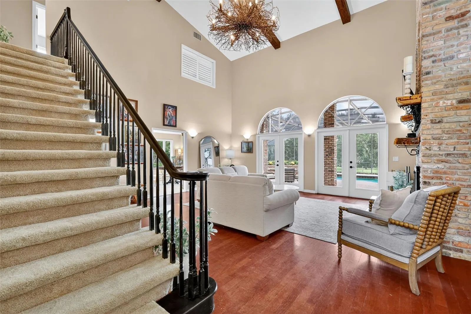 Exceptional 70 +/- acre gated lakefront estate, perfect for those who value privacy, serenity and luxury. The property features beautiful open fields with large oaks, no HOA, and frontage on a skiable lake. All of this offers pure peace, yet is only minutes from shopping in Clermont. As you drive through the private gated entrance, you are greeted by a canopy of large oak trees that guides you to the residence, with its circular driveway and beautifully landscaped grounds. The 3,620-square-foot residence features four bedrooms, two full bathrooms, and a half bathroom. It includes a stunning renovated kitchen with an island and breakfast area, a large dining room perfect for family gatherings and parties, and a spacious great room with vaulted ceilings and a fireplace, all bathed in natural light. Off the foyer is a large private office space (which could also be used as another bedroom) that connects to the impressive primary suite. Both the primary suite and the primary bathroom are beautifully appointed. The primary bathroom features a large walk-in shower, designer closets, and custom copper sinks. From the great room, stairs lead to the second level, where you will find three additional bedrooms and a bathroom. The great room and primary bedroom both have access to the lanai, screened-in pool, and spa. The 70+/- acres, including 41+/- acres of uplands is located on two bodies of water, Lake Gary and the water/marshes of Lake Nellie, the property features open pastures dotted with large oak trees and cross fencing. This expansive property could potentially be subdivided into a development. The home has been updated with extensive improvements, which are detailed in attachments.