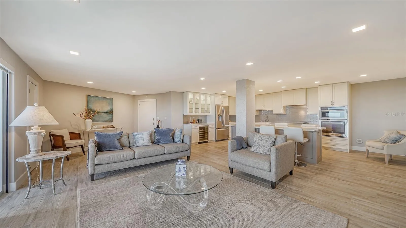 Wonderful “Manhattan Style” beachfront Condo with sweeping views of Sarasota Bay and views of the Gulf now available at the popular Islander Club on LBK. This gorgeous beachfront renovation was completed 4 years ago and truly shows all the craftmanship that went into the process under the owner’s direction. Open kitchen beings the morning light into the room for enjoying your coffee or tea as you gaze across the sparking blue waters of the bay. Large 38ft balcony also has views of bay and a bit of the Gulf of Mexico. The Primary suite is a comfortable 13X20 which accesses the balcony and has a large walk-in closet. It is light and bright and a restful haven away from the main living area. The Islander club has recently renovated their clubhouse. The gym overlooks the gulf and the pool. There is a conference room, library, and an Olympic size heated pool, not to mention their Har-Tru tennis courts. The Location is very convenient. The shops of Bay Isles with the Publix and CVS are just a couple of minutes away. It’s only 10 minutes to World renown St Armand Circle. Make this your permanent home or your week-end getaway. Secured Building . At The Islander Club “Everyday is a Holiday and Life is an endless vacation.