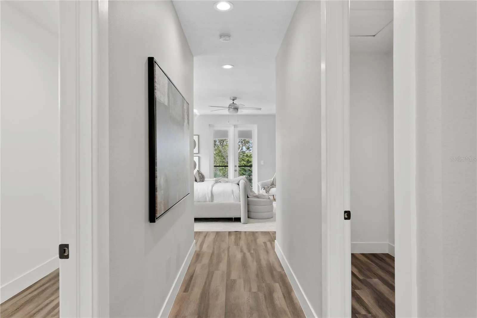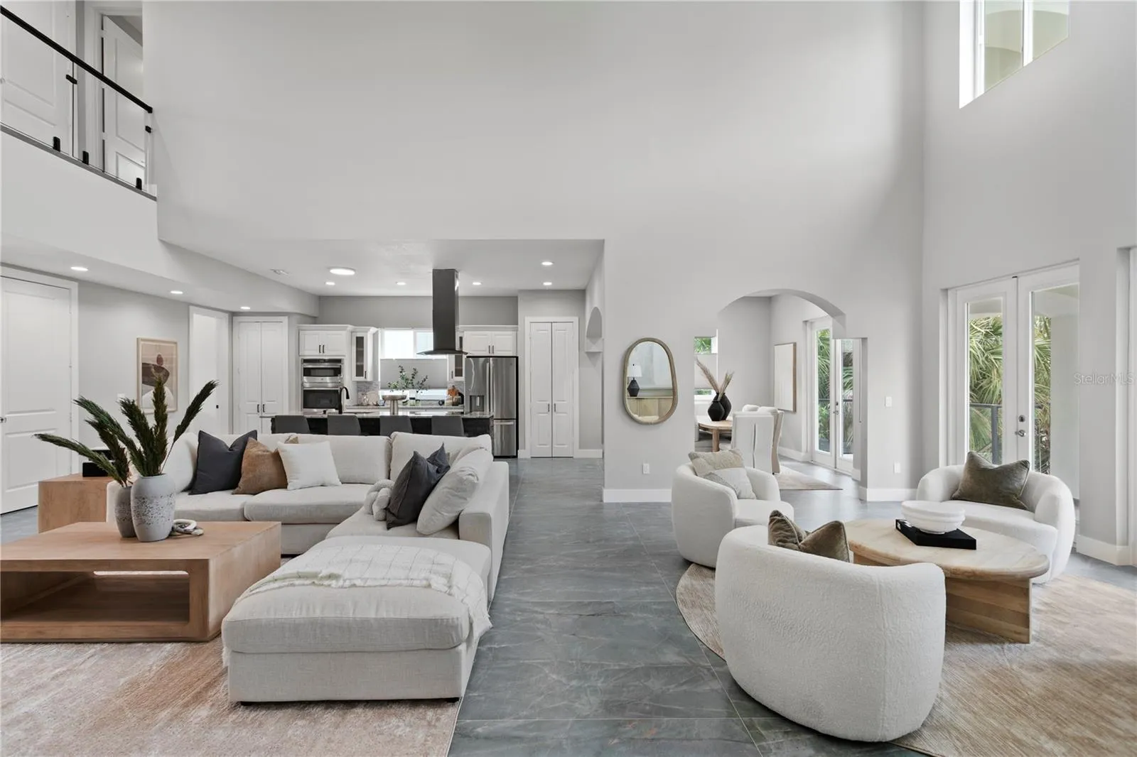 A modern coastal masterpiece in the heart of Dunedin, moments from Honeymoon Island, Main Street’s cafés and boutiques, and the golf course across the street. This new construction home blends architectural beauty and everyday function with five bedrooms, five baths, impact windows, a private elevator, and 48-by-48-inch designer tile floors. The open living spaces rise beneath double-height ceilings with walls of glass and artful light. The chef’s kitchen features granite counters and seamless flow to the great room. A six-car garage and RV or boat parking offer rare versatility. The bamboo-lined backyard provides space for a custom pool. Across the street, explore the Pinellas Trail stretching from Tarpon Springs to St. Petersburg. Caladesi and Clearwater Beach await, where sunsets and serenity define your everyday life.