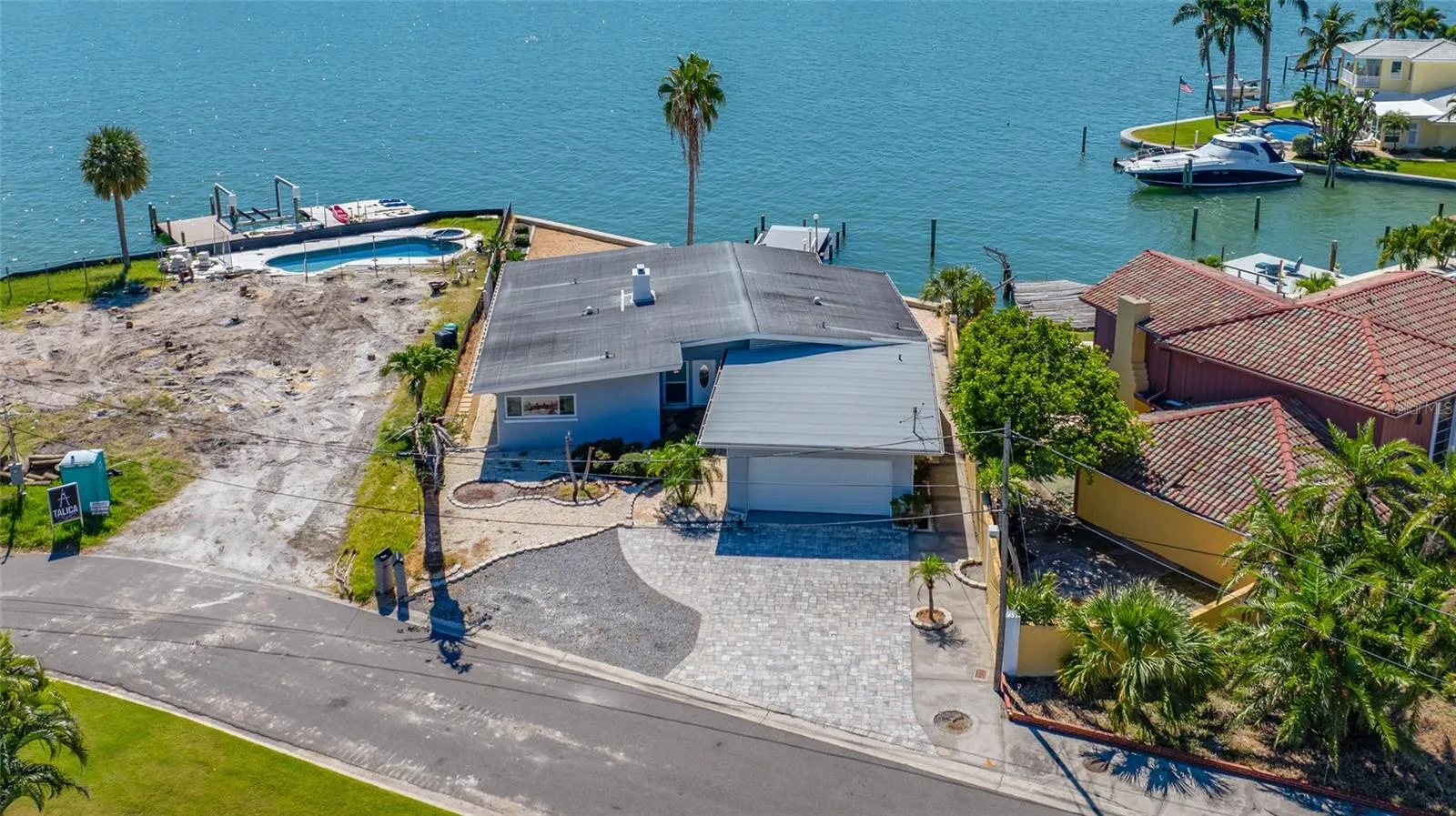 Under contract-accepting backup offers. Nestled on a prime stretch of St. Pete Beach, this 3-bedroom, 3-bath Mid Century Modern waterfront residence offers 100 feet of direct water frontage with a wide southwestern exposure, ensuring stunning sunsets and expansive water vistas. A generous driveway and attached garage provide ample parking and storage, while the home’s design invites easy indoor-outdoor living. Welcoming open floor-plan and an amazing bonus Florida.Sun room with expansive view all around. Large paved waterfront patio with lots of room to entertain Family and Friends. Professionally remediated after Hurricane Helene, it’s a pristine clean canvas, ready for its new owner to personalize with their decorating vision. The property sits on a quiet cul-de-sac in coveted Bahia Shores. With no Homeowners Association, you’ll enjoy more freedom to shape the home to your taste. Monthly rentals are permitted, presenting an appealing option for investors or a flexible use plan. The home sits on a secluded cul-de-sac, enhancing serenity while still being just a short walk to the sandy shore of pristine St Pete Beach. enjoy proximity to unique restaurants, boutique shops, and waterfront amenities, with effortless access to the Pinellas Bayway, downtown St. Pete, and all the regional attractions of the Tampa Bay area. Embrace the Florida tropical beach lifestyle here, where daily sunsets over the water and a coastal breeze define modern coastal living. Make this your full time Tropical Paradise or use it as an incredible opportunity to create rental income. Come join the Florida lifestyle today.