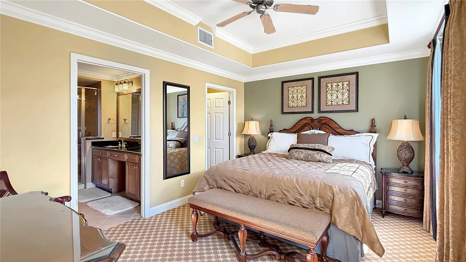 The Primary Suite Offers Serene Views Of The Tree-Lined Pool Area And Includes A Walk-In Closet Plus A Separate Owner’s Closet. The Primary Bathroom Features Dual Sinks And A Walk-In Shower. Bedroom Two Includes A Full-Size Bunk Bed And Updated Lighting With A Ceiling Fan. Bedroom Three Offers A Queen-Size Trundle Bed And A Built-In Closet With Generous Storage.