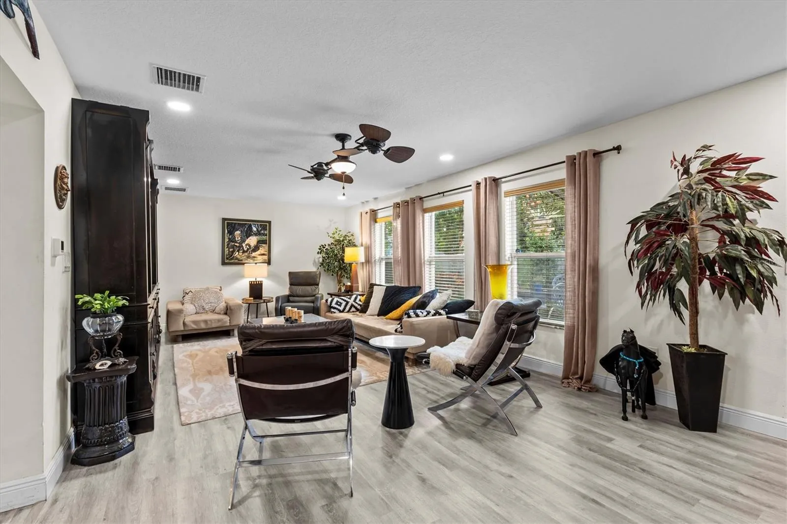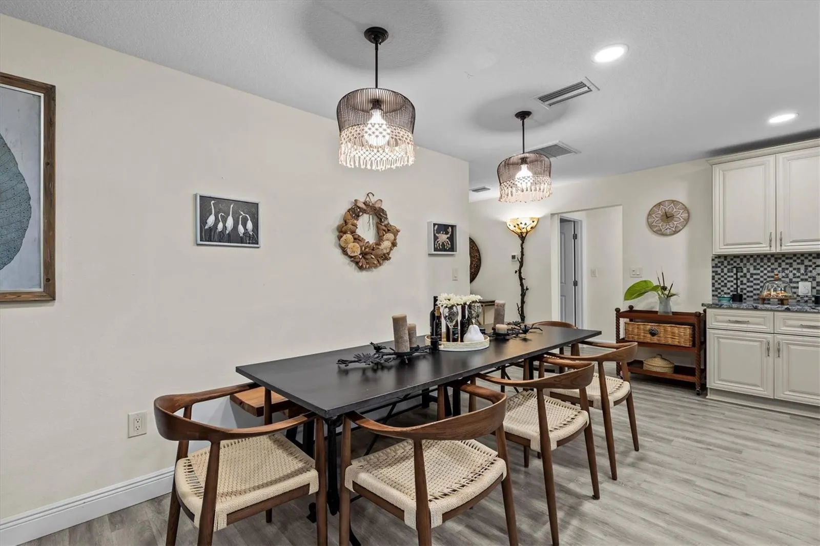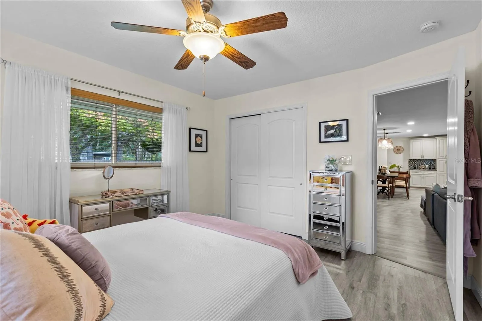 Under contract-accepting backup offers. Welcome Home to Dunedin Charm & Coastal Living! Fabulous location — and best of all, no flood zone and never flooded! Just a half-mile stroll or golf cart ride to Delightful Downtown Dunedin, where you’ll enjoy boutique shops, lively bars, local breweries, top-rated restaurants, a vibrant farmers market, and the scenic waterfront park and pier. The famous 45-mile Pinellas Trail runs right through town for endless biking, walking, or jogging adventures. Perfectly situated on the northwest corner of New York Ave and James Street, this beautifully maintained Mid-Century Modern ranch-style home offers 4 bedrooms, 2 baths, and approximately 2,850 sq. ft. of living space on a spacious half-acre corner lot — providing exceptional privacy and room to grow. Inside, you’ll find a light-filled layout with a living room, dining room, and family room, plus a side-entry 2-car garage, mudroom, and indoor laundry room. The home underwent a complete renovation in 2019 (effective year built), including a new roof (2019), dual A/C systems (2019), new water heater (2024), and durable vinyl and tile flooring throughout. Property recently passed a clean 4-point inspection. The heart of this home is the gourmet kitchen — a true chef’s delight! Featuring custom hardwood cabinetry, granite countertops, stainless steel appliances, and a large center island with a farmhouse sink and breakfast bar. It’s the perfect gathering space for friends and family to enjoy good conversation and home-cooked meals. Step outside to your private backyard retreat — a gardener’s paradise and entertainer’s dream. Relax on the brick paver patio under the soft glow of string lights, or unwind in the oversized heated spa framed by an archway of blooming jasmine. Mature grandfather oaks provide shade and beauty, while the lush vegetable garden produces fresh tomatoes, cucumbers, zucchini, beans, and lemons. A 6-zone sprinkler system on reclaimed water keeps everything vibrant year-round. The south side yard includes a 30-ft gate with room to store your RV or boat right on the property. Plus, the sellers are including blueprints for an optional 1,200 sq. ft. addition — ideal for an in-law suite or guest apartment — giving you even more flexibility and future potential.Why wait? Come experience the Dunedin lifestyle you’ve been dreaming of — where small-town charm meets coastal living. Welcome home!