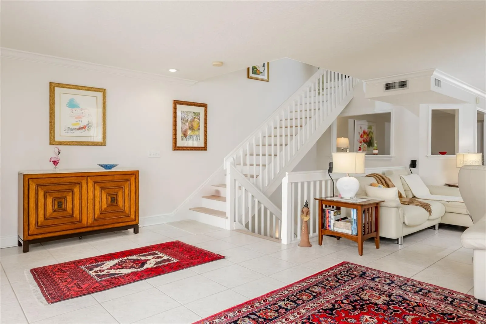 Elevated living from this open-concept main floor features a bright kitchen, dining area, full bath, and a spacious living room that opens to a huge 24’×12′ waterfront balcony—perfect for sunsets and entertaining. Upstairs, the private primary suite offers a spacious luxurious bath, large closet, and its own balcony overlooking the Intracoastal. Two additional bedrooms, a full bath, and upstairs laundry complete the top floor.