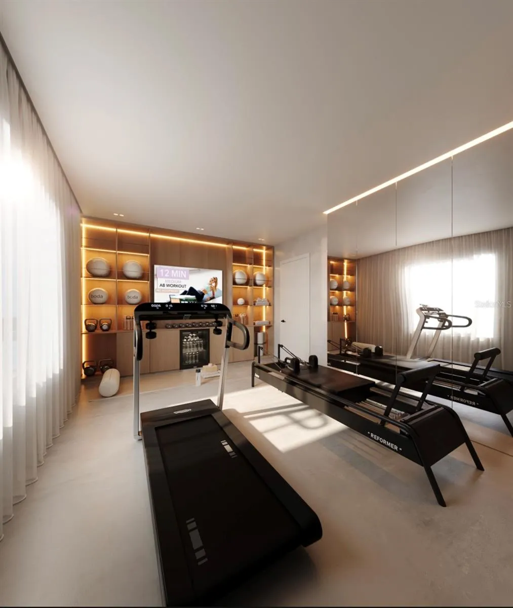 Flex room with a private balcony is ideal for creating a personal gym, or quiet home office. The upper loft level features two spacious guest suites, each with a private bathroom, walk-in closet, and access to its own private balcony for comfort and privacy.
