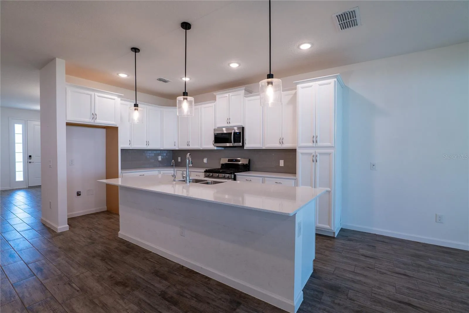 Welcome Home to the Sebring Model – Where Everyday Life Meets Timeless Style. Step inside this stunning two-story Sebring and feel instantly at home. The inviting foyer opens to a grand dining room and an airy gathering space designed for both relaxing nights in and joyful celebrations with family and friends. The heart of the home is the bright, open kitchen complete with crisp white cabinetry, elegant stone countertops, and modern pendant lighting that sets the perfect tone for cooking or conversation. Tucked just around the corner, a convenient utility room and powder bath make everyday living effortless. The luxurious first-floor owners suite offers both privacy and comfort, featuring two spacious walk-in closets, a spa-inspired shower, and dual sinks for a touch of everyday indulgence. Upstairs, a loft provides the ideal space for movie nights, playtime, or a cozy reading nook. Three additional bedrooms and two full baths ensure everyone has room to unwind. Outdoors, the lifestyle continues with a screen-enclosed, extended porch (40×7) perfect for morning coffee or evening gatherings overlooking the tranquil pond and conservation area. Enjoy thoughtful upgrades throughout, including a 3-car garage with epoxy flooring and ceiling-mounted storage, PVC fencing, custom window blinds, gutters, and a Kinetico water system with kitchen dispenser. For your electric car there is a 240 volt EV charging station. And guest parking conveniently across the street.