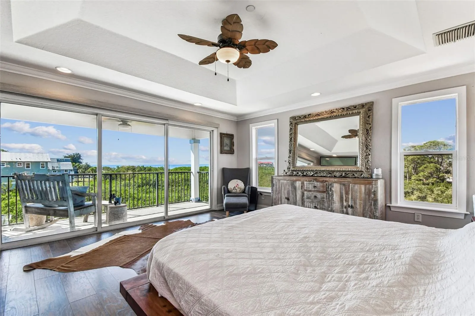 Step inside to discover a bright, open floor plan with four bedrooms, four full baths, a den (possible 5th bedroom), and a three-car garage. The chef’s kitchen features custom cabinetry, granite counters, and top-of-the-line KitchenAid appliances, opening seamlessly to the great room and expansive wrap-around balcony, perfect for sunset dining or morning coffee with a view.