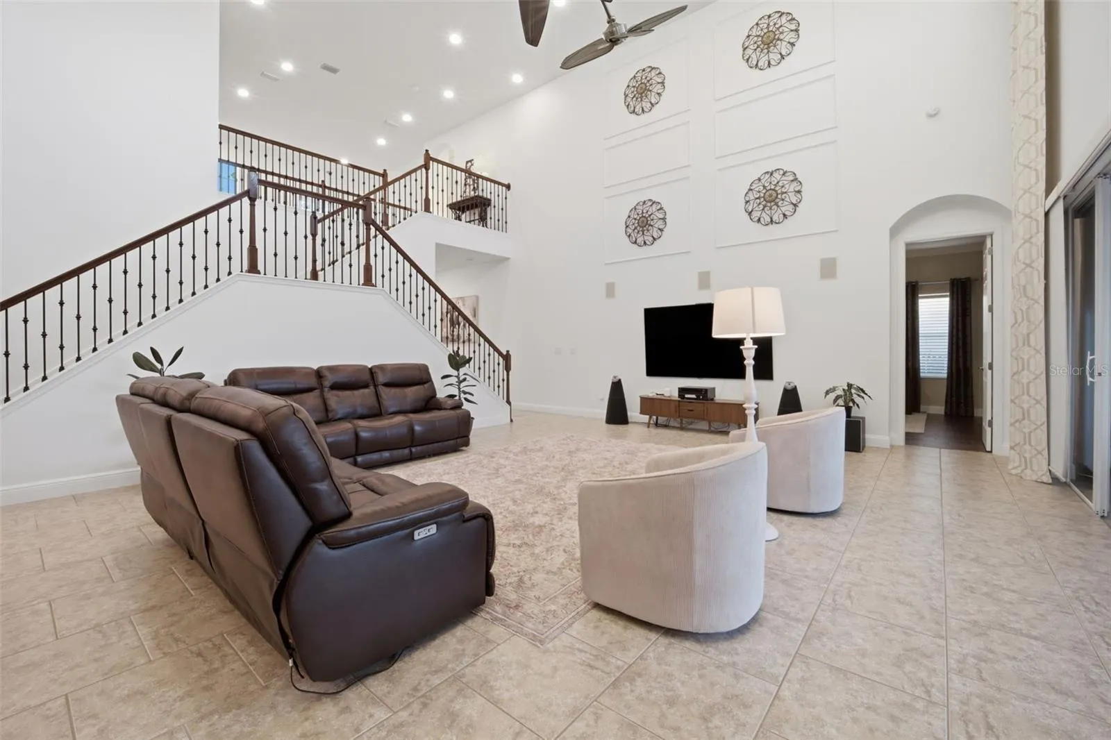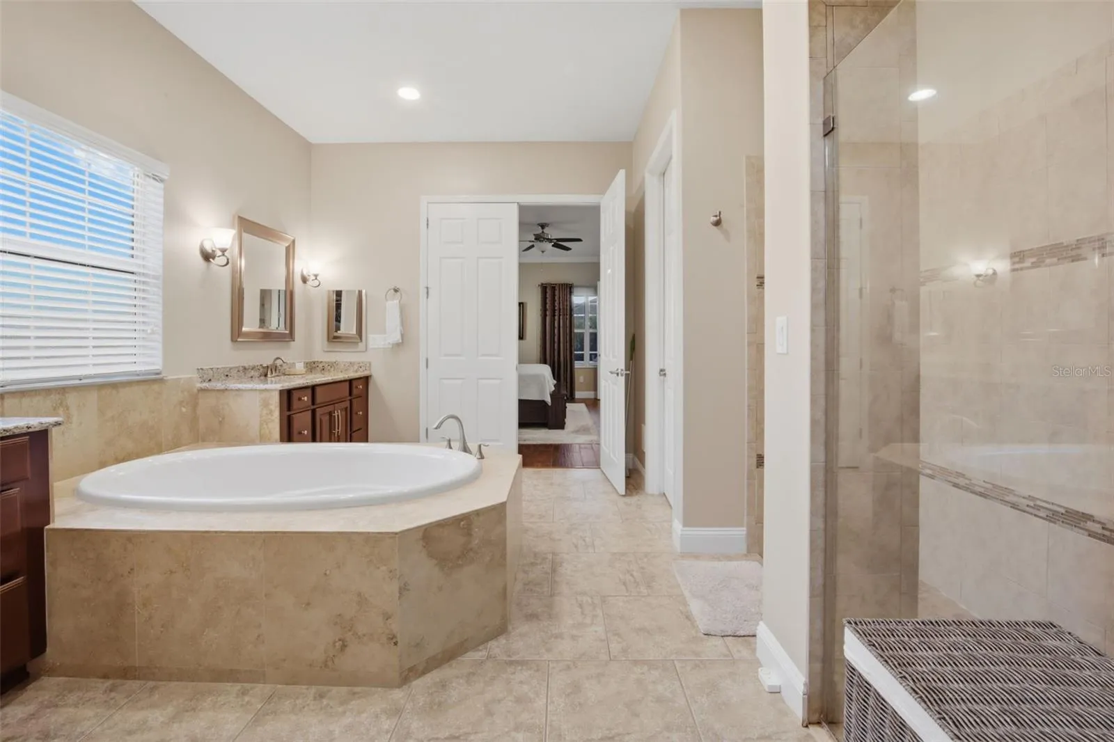 One or more photo(s) has been virtually staged. Experience Luxury Florida living at its finest in this stunning Gasparilla model by Westbay, located in the highly coveted gated community of Watermark at Seven Oaks. Perfectly positioned on an oversized corner lot, this 5-bedroom, 4.5-bathroom Pool home with a 3-car garage offers the perfect blend of elegance, comfort, and resort-style living. Step inside and be greeted by 23-foot soaring ceilings, natural light streaming through every corner, and an open, airy layout designed for both everyday living and unforgettable entertaining. The grand staircase serves as a true architectural centerpiece, seamlessly connecting the main and upper levels. The gourmet kitchen features an expansive Island with seating, premium appliances, and a view that overlooks the spacious family room, ideal for hosting gatherings or enjoying casual morning coffee. The primary suite and an additional bedroom (currently used as an office) are conveniently located on the first floor. Primary suite offers a luxirious spa-like bathroom with dual vanities, a separate tub and large shower, and a walk-in closet complete with closet organizers.