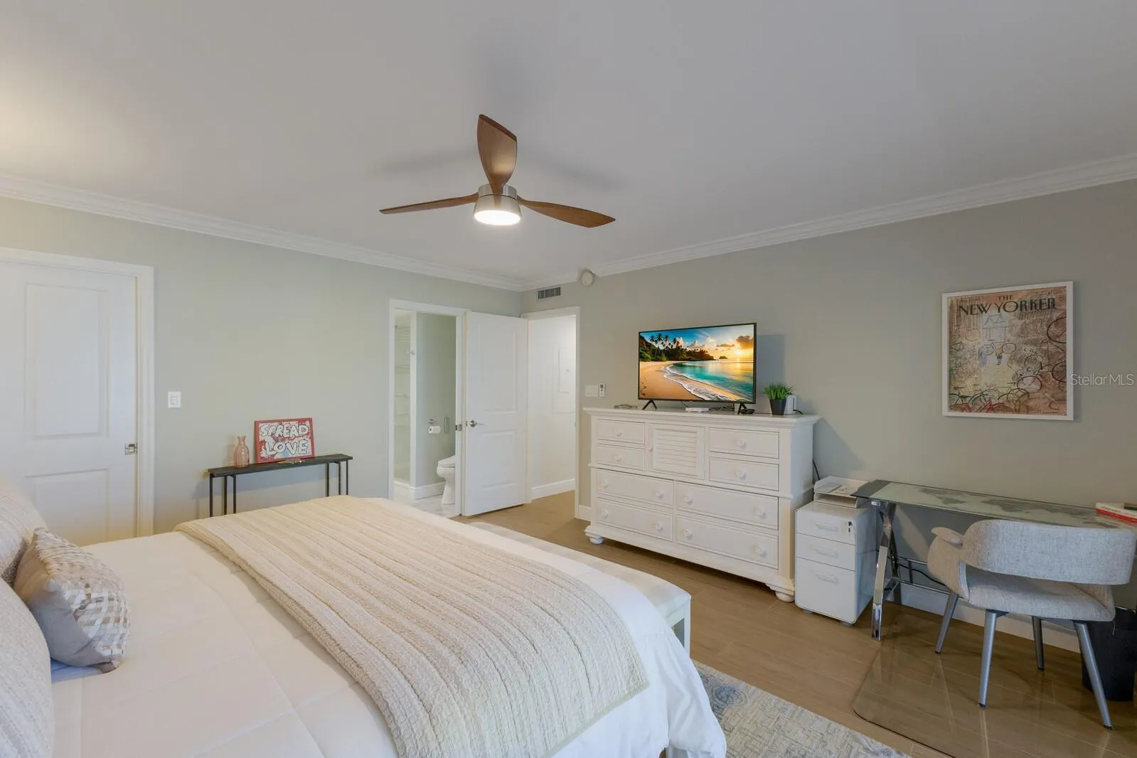 Step inside and you’ll immediately feel the sense of space and light. The open concept living and dining area flows effortlessly, making it perfect for both relaxing and entertaining. Elegant porcelain tile flooring runs throughout the condo, beautifully accented by refined crown molding and 6 inches baseboards. Large windows and glass sliders fill the space with natural light and showcase beautiful bay and canal views. The spacious private balcony lanai is enhanced with dual ceiling fans, creating the perfect spot to sip morning coffee, enjoy a good book, or unwind in the evening. This condo is being sold furnished, featuring carefully selected, high-quality pieces that perfectly complement the style, giving the space a model-like appearance. A detailed furniture list is available upon request. The updated kitchen is a chef’s dream, featuring Southern Stone custom cabinetry, quartz countertops, soft-close drawers, recessed LED lighting, and high-end stainless steel appliances including Fisher & Paykel and Bosch. The primary suite is a true retreat, offering direct balcony access, a custom-built closet, and a luxurious en-suite bathroom with quartz countertops, wood cabinetry, and a glass-enclosed walk-in shower. The guest bedroom also enjoys beautiful water views and has its own balcony access, a spacious closet, and a full bath nearby. This condo has been thoughtfully updated with IMPACT-RESISTANT PGT HURRICANE WINDOWS, a 28-foot LANAI with glass slider doors, a 2024 A/C SYSTEM, 2025 HOT WATER HEATER, stacked BOSCH WASHER & DRYER, NEW CEILING FANS throughout, a NEW ELECTRICAL PANEL WITH WHOLE-HOME SURGE PROTECTION, and STYLISH NEW INTERIOR DOORS. Every detail has been carefully considered to create a residence that is both elegant and functional. Living in Longboat Harbour means experiencing one of the most desirable communities on Longboat Key. Just steps away, you have access to the private gated beach club where you can relax on the sand, enjoy the Gulf breeze, and watch incredible sunsets every evening. The community also offers resort-style amenities designed to make every day feel like a vacation, including: 4 heated swimming pools, fully equipped fitness center, tennis and pickleball courts, fishing piers and kayak storage, boat slips available on a first come first served basis, vibrant clubhouse with social events and activities. Perfectly located on Longboat Key, you’ll be close to some of the area’s best dining, shopping, and entertainment options while still enjoying the peace and privacy of this gated waterfront community. Whether you’re looking for a serene retreat, a vacation property, or a full-time residence, this condo delivers everything you need to experience the very best of Florida’s Bay-to-Gulf lifestyle.