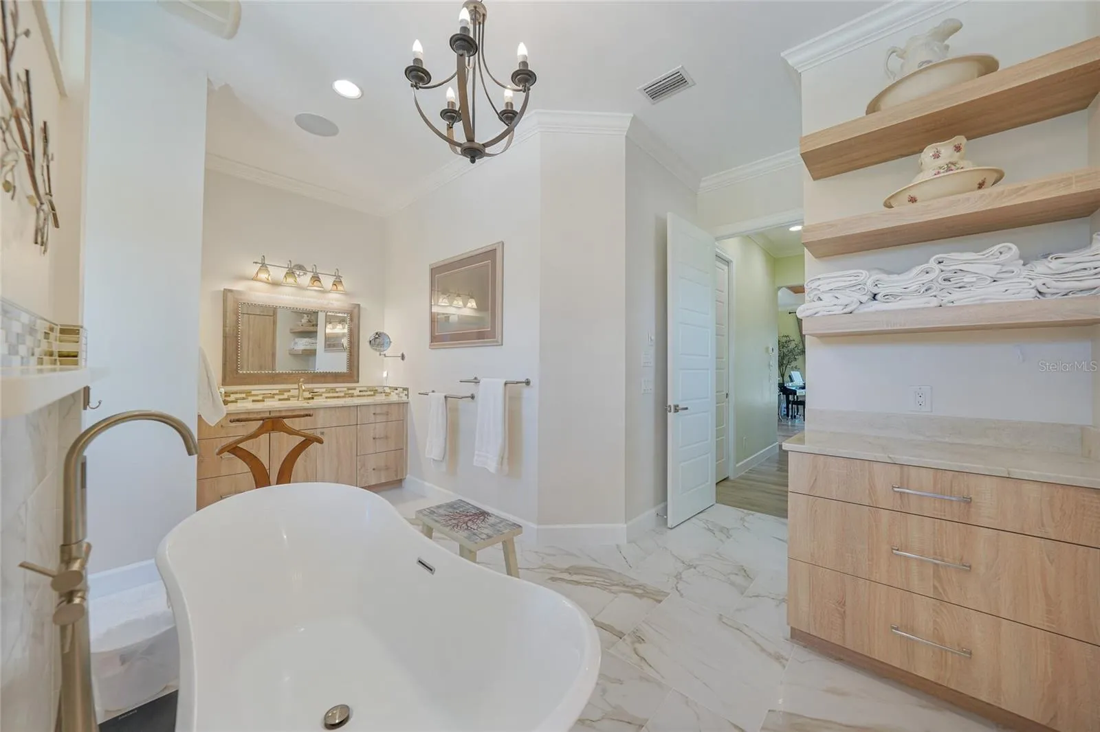 Situated on an expansive corner lot boasting over 600 linear feet of pristine waterfront, this home captures breathtaking views from every angle. Step inside and be welcomed by a seamless open floor plan adorned with designer finishes, elegant crown molding, and an abundance of natural light. Every detail has been carefully considered—from the meticulously curated décor to the flawless craftsmanship that defines each space.