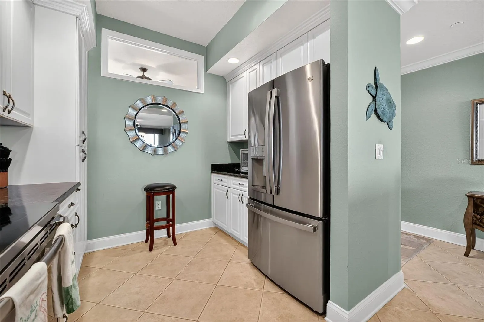 The primary suite offers a serene retreat with a walk-in closet and an in-suite bath, while the guest bedroom and full bath provide ideal comfort for visitors. Tile flooring throughout keeps maintenance easy and the coastal aesthetic fresh.