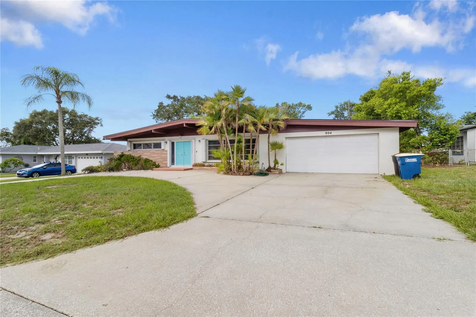 The outdoor area offers a fully screened-in pool and covered lanai, ideal for relaxing or entertaining year-round. A horseshoe driveway and 2-car garage provide ample parking and convenience, while the neighborhood is minutes from Clearwater Beach, shopping, and dining.