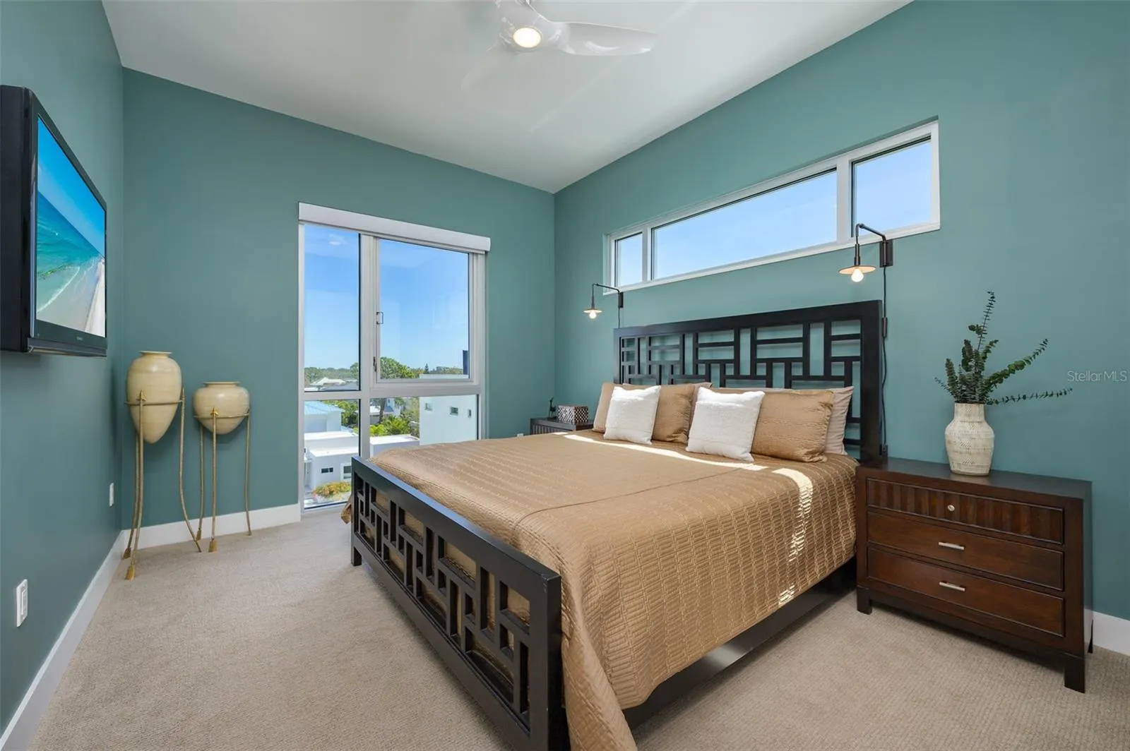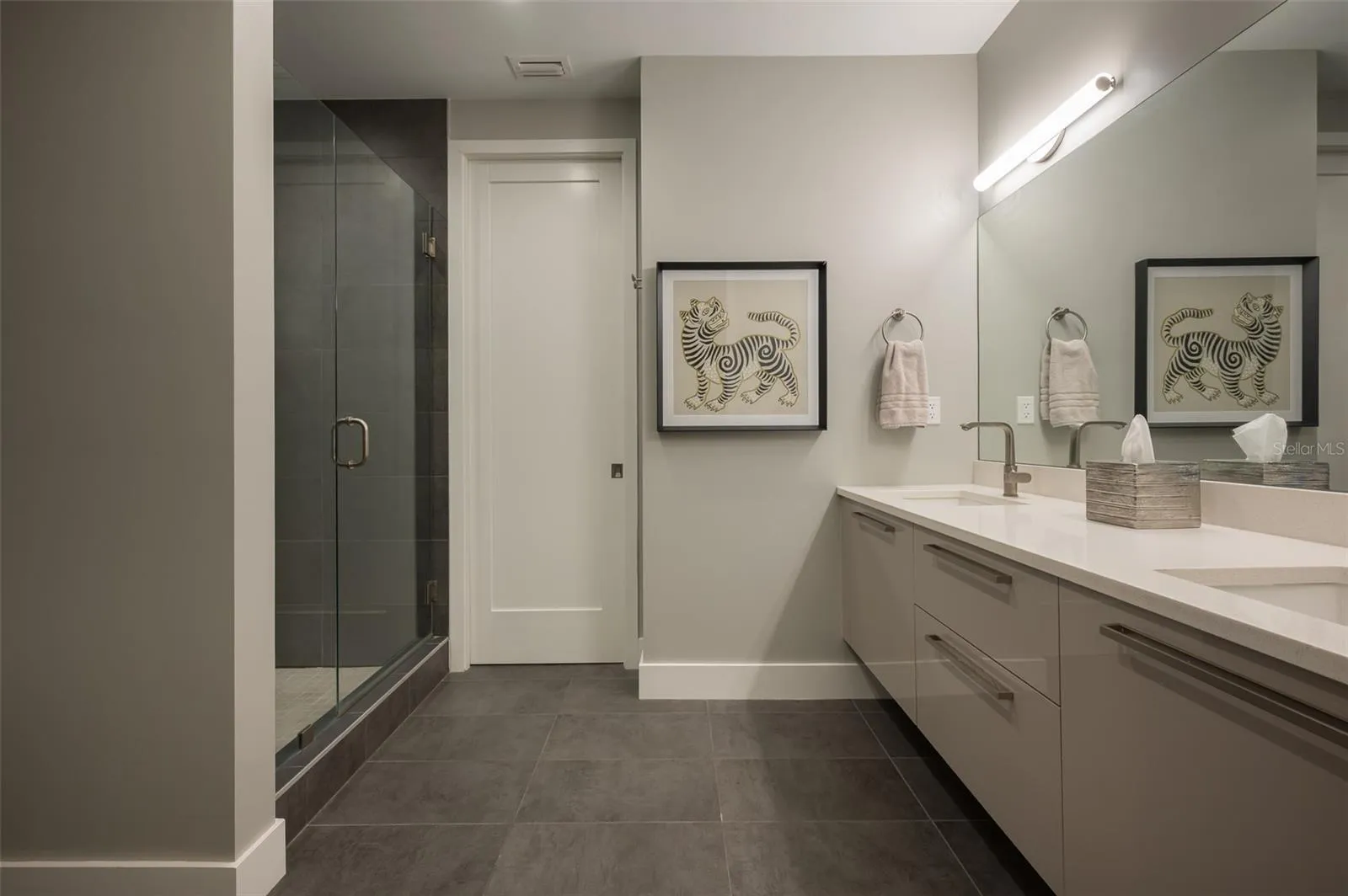 This desirable top-floor residence in the exclusive Orange Club community seamlessly blends modern design with everyday comfort. In a prime downtown location within a boutique building of only 15 residences, this sought-after Sunrise floor plan offers over 1,500 square feet of open and airy living space. The main living areas feature elegant wood-look porcelain tile flooring, complementing the home’s contemporary aesthetic. An open-concept layout enhances the flow of natural light, with floor-to-ceiling sliders leading to an expansive private balcony. Designed for relaxation and entertaining, the balcony includes an overhead fan, and a natural gas grill with ample room for outdoor dining and lounging. The chef-inspired kitchen is stylish and functional, featuring a natural gas cooktop, premium dark wood-grain cabinetry, stainless steel appliances, and a large island that provides additional workspace and seating. The adjacent dining area is open and spacious, seamlessly integrating with the kitchen and living area for effortless entertaining. The primary suite spans the width of the residence, offering a tranquil retreat with abundant natural light, a spa-inspired en-suite bath and a generous walk-in closet. The primary bath is thoughtfully designed with a glass-enclosed walk-in shower, an extra-long floating double vanity and built-in storage, all complemented by large-format porcelain tiles. One of the additional bedrooms serves as a dedicated study with a closet, making it easily adaptable as a guest space or private media den. Positioned for privacy, the additional bedrooms are on the opposite side of the home, separated from the primary suite by the main living areas. High-end features throughout include shades, premium fixtures and wood-look porcelain tile flooring in the main living spaces. This residence also includes a deeded, assigned covered parking space, climate-controlled ground-level storage and access to ample guest parking. Residents of Orange Club enjoy a heated pool and patio area, ideal for year-round relaxation. Furniture is available for purchase under a separate bill of sale. In the heart of Sarasota, near the historic Burns Court neighborhood, this exceptional residence offers the blend of urban convenience, privacy and tranquility, all within a short distance of downtown Sarasota and Sarasota Bay.