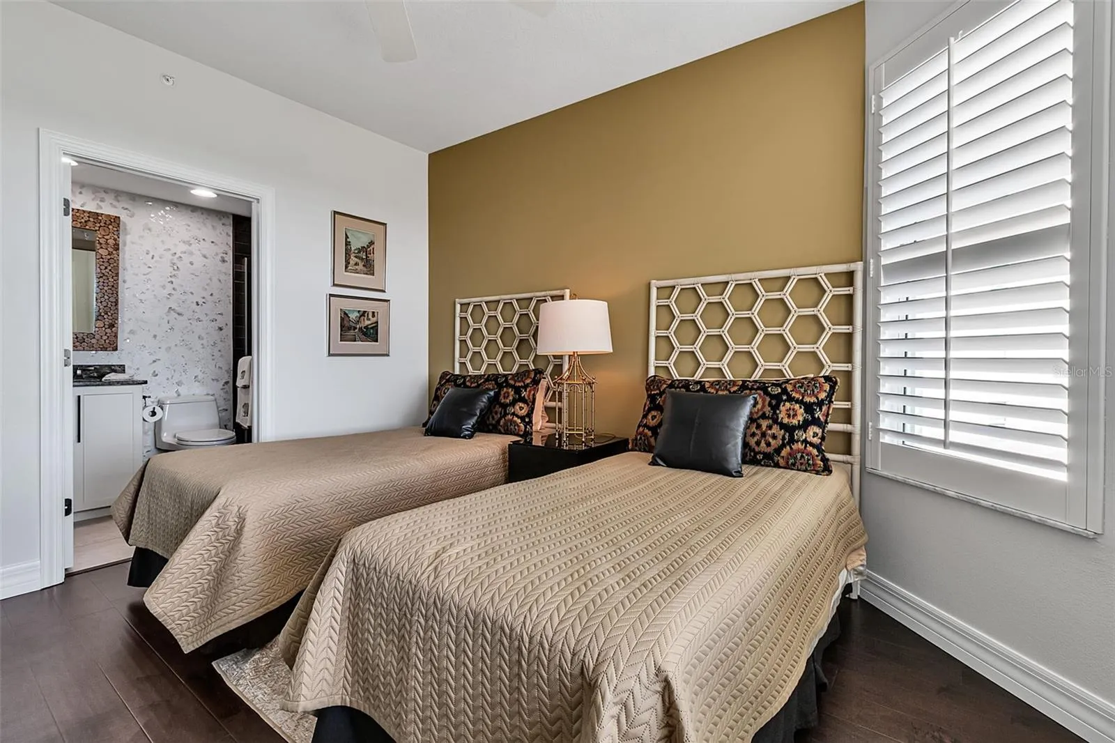 Experience breathtaking views of the Bay and Gulf from this spacious 3 bedroom, 3 bath end unit, featuring a separate dining room and den. Completely updated and meticulously maintained, this unit is beautifully appointed and custom features abound. A private elevator takes you to a majestic foyer which opens to the great room. Facing west the views are gorgeous from sunrise to sunset. The kitchen is high-end and stocked with top-of-the-line appliances. The master suite has a large sitting area, walk-in closets, a luxurious bath and incredible views! Spacious and lavish, this unit lives large, with the feeling of a house. Yet you enjoy a luxury lifestyle of comfort and ease with all the conveniences of condo living. With two under the building parking spaces, this is a true must see offering. There are so many special touches and features it is hard to list them all. Meridian residents have use of their own pool, spa and workout room, and can take advantage of all the other amenities of The Oaks Club, two 18-hole championship golf courses, three onsite restaurants, twelve HAR-TRU tennis courts (4 lighted), four new pickleball courts, a regulation croquet lawn, and a state-of-the-art fitness center. Club membership is required with homeownership.