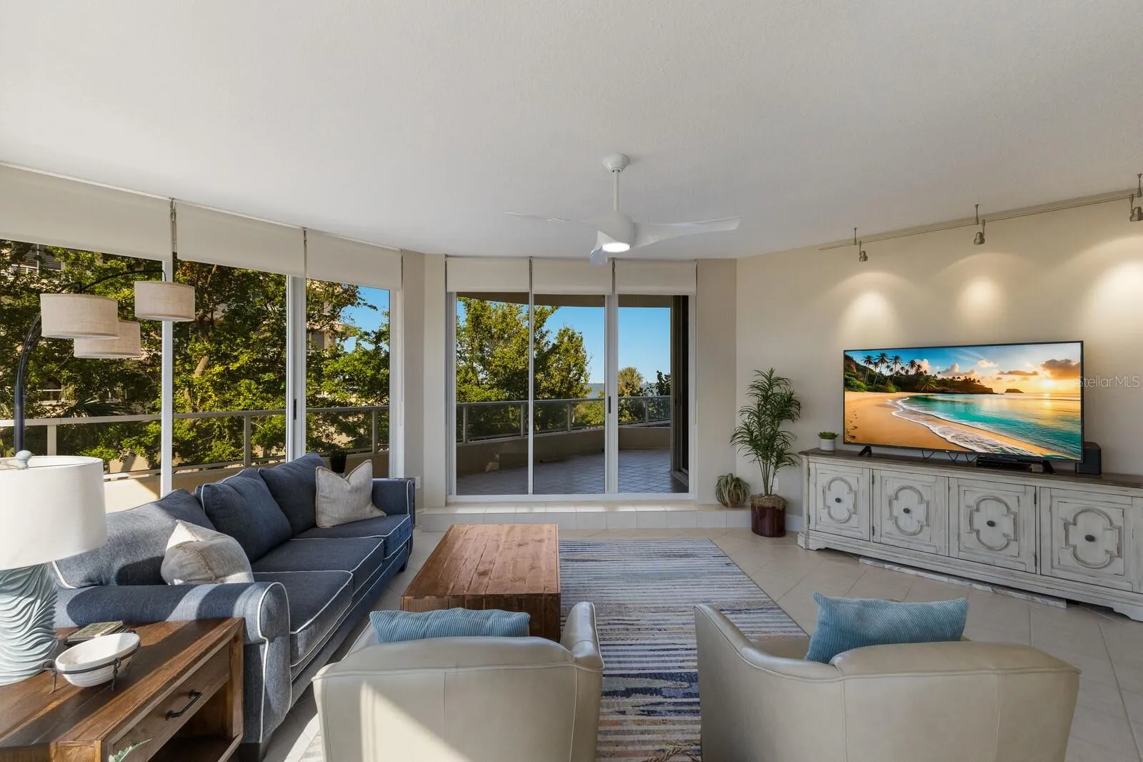 This desirable first-floor corner residence at Grand Bay showcases an expansive wraparound terrace overlooking Sarasota Bay—perfect for enjoying stunning sunrises over the Bay and sunsets over the gardens and golf course. Uniquely positioned for privacy, this home has been tastefully refreshed with a neutral color palette and comes fully furnished, and is the lowest-priced unit in Grand Bay.