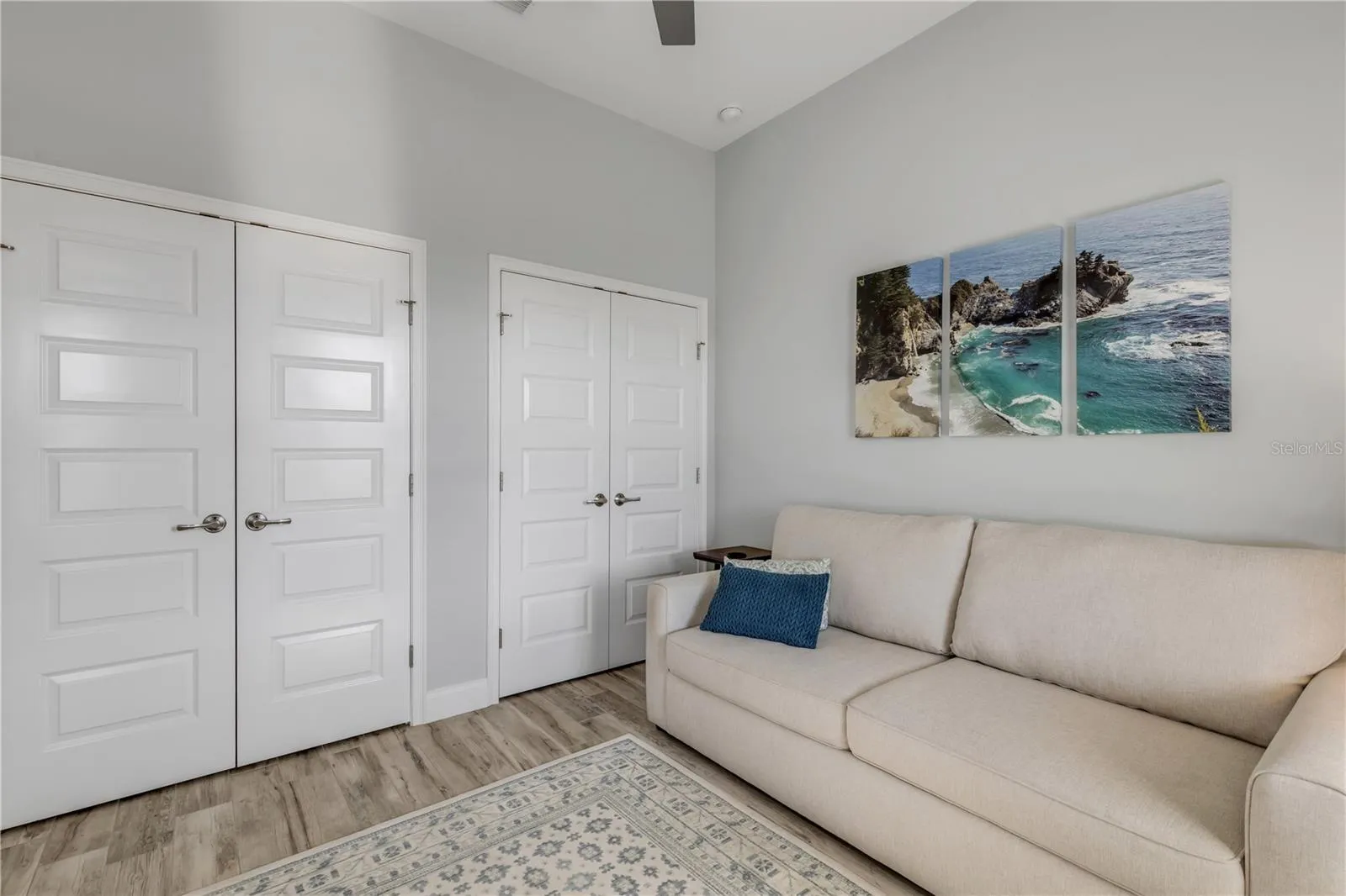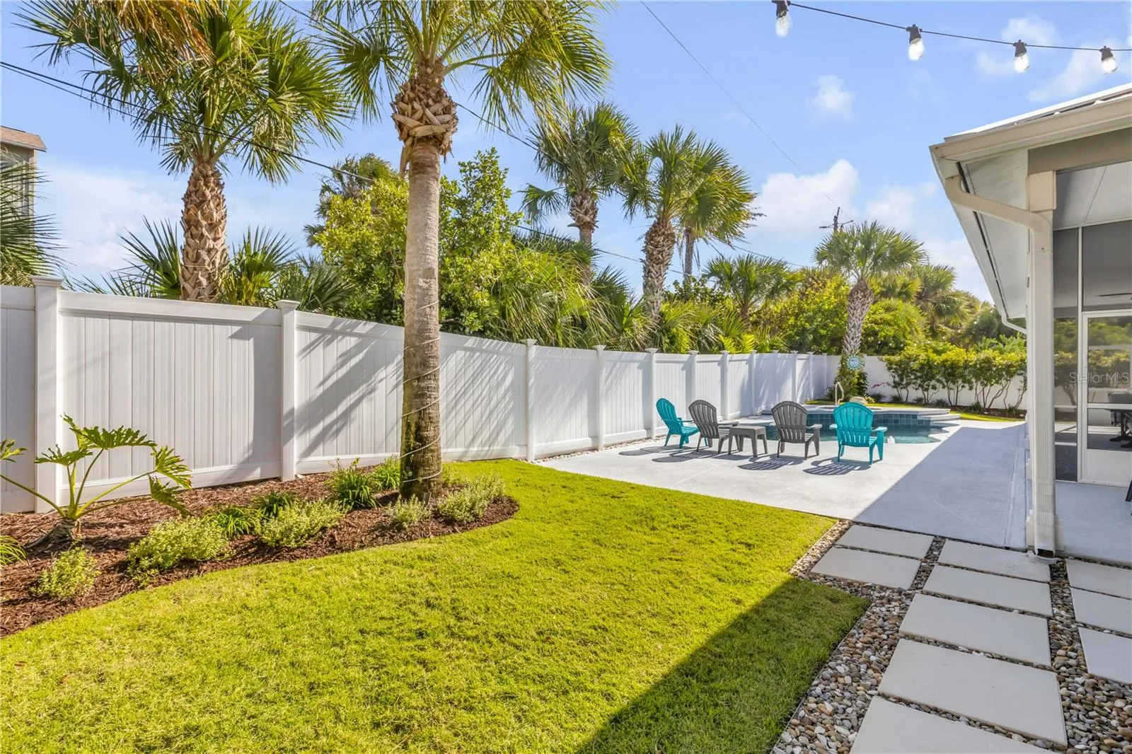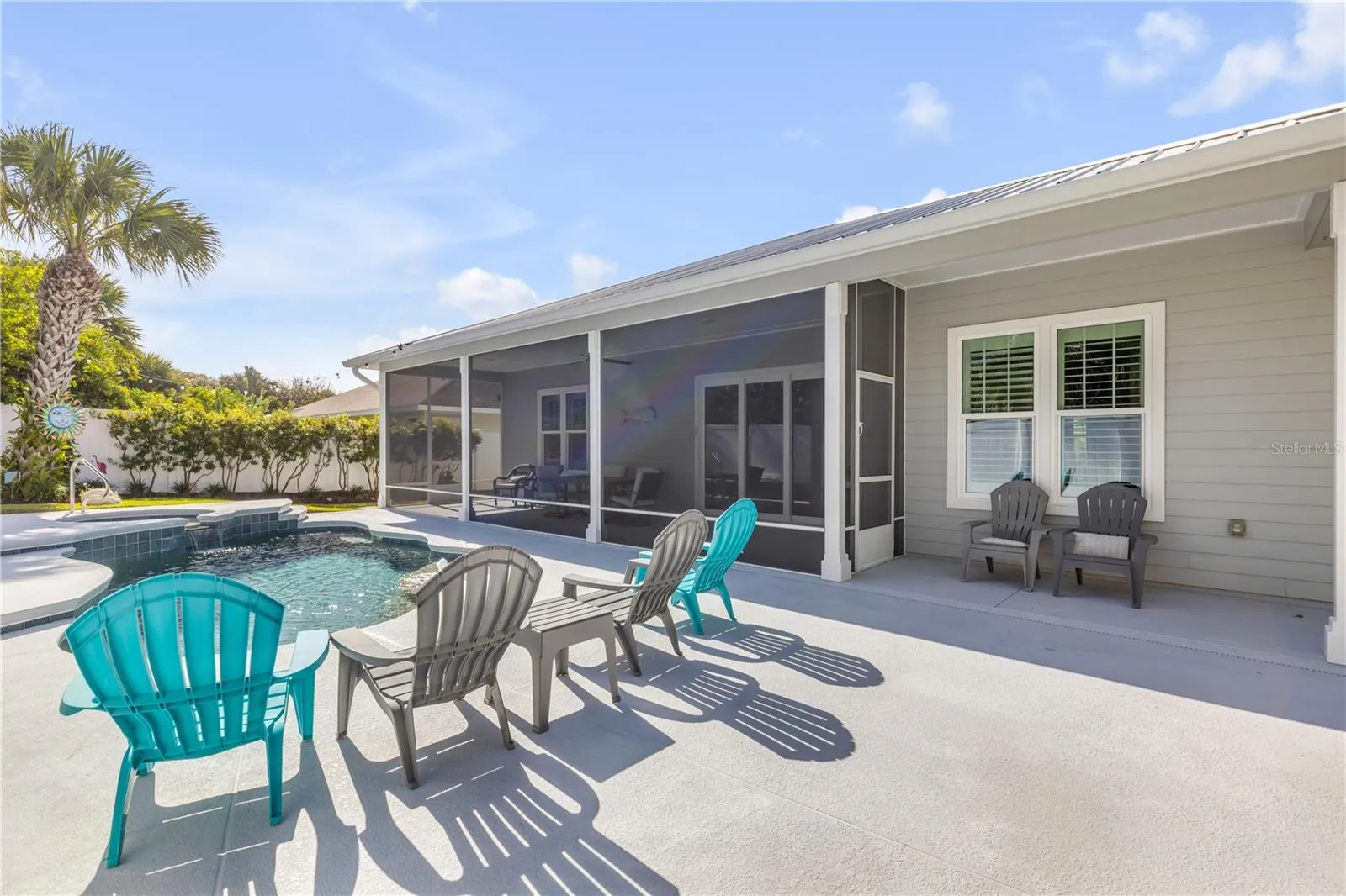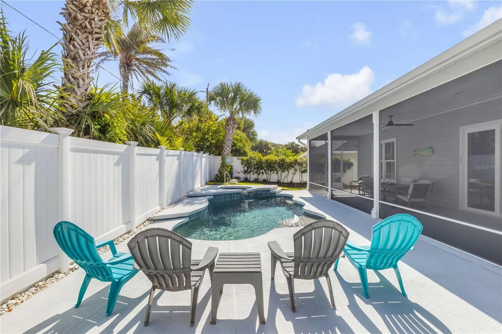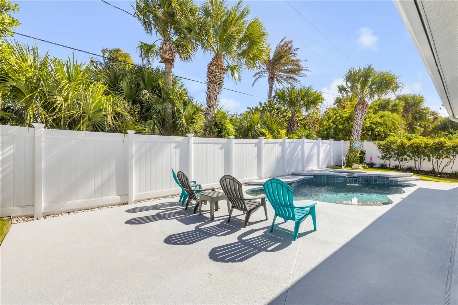Need a home office? The large front guest room serves as a home office or guest bedroom and features French doors and double closets. The spacious owner’s suite provides room for a sitting area, and the split floor plan offers two additional bedrooms for privacy for a total of 4 bedrooms. The 2 car garage includes overhead storage racks for ample organization. 2024 A/C. Wind down your evenings by the luxurious heated pool and spa, or take a stroll on the white sandy beaches of New Smyrna.