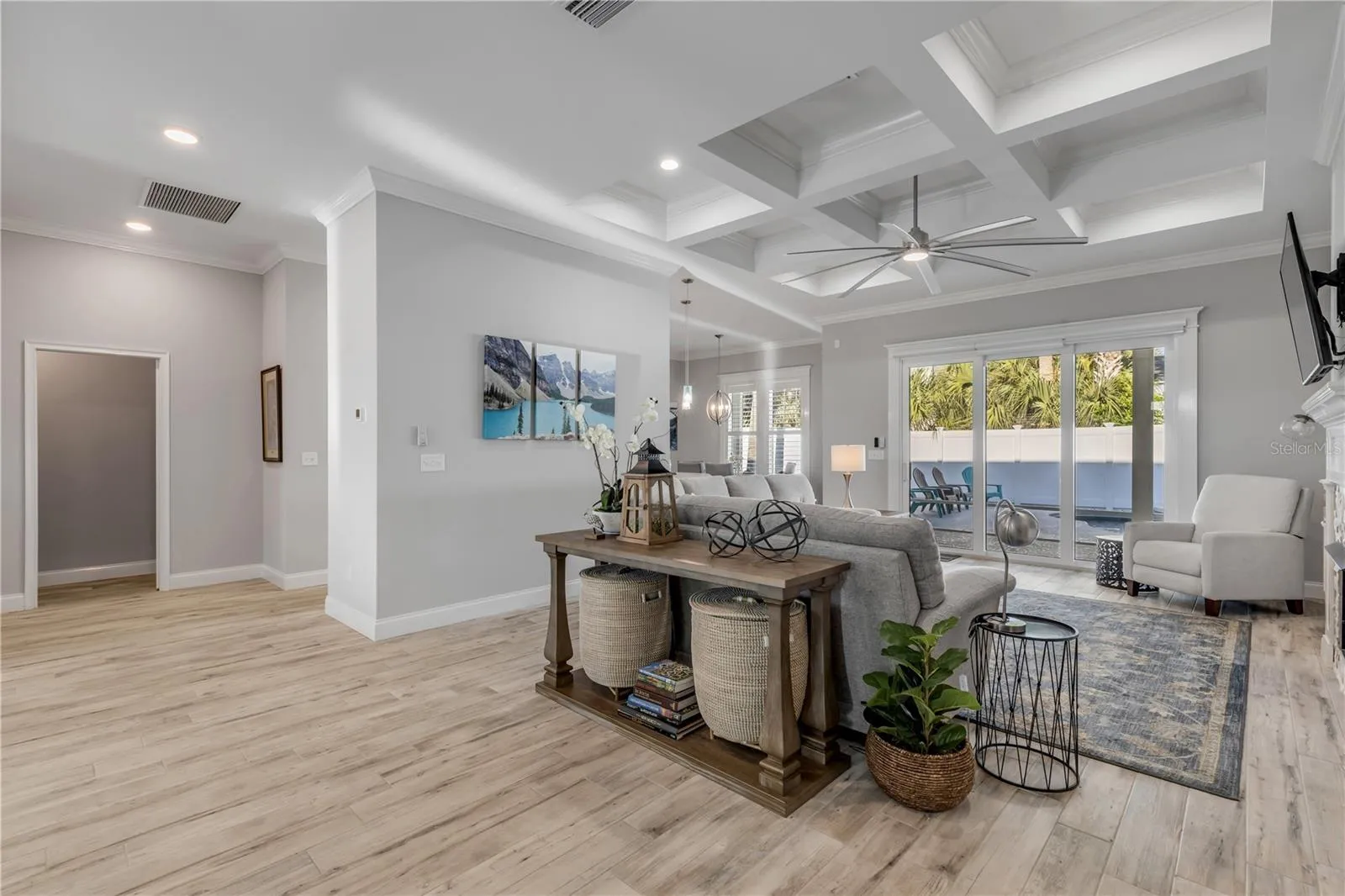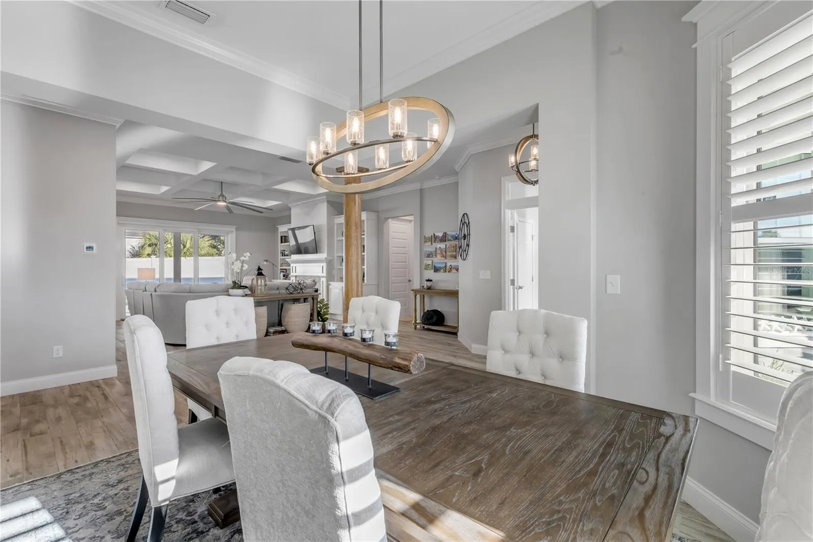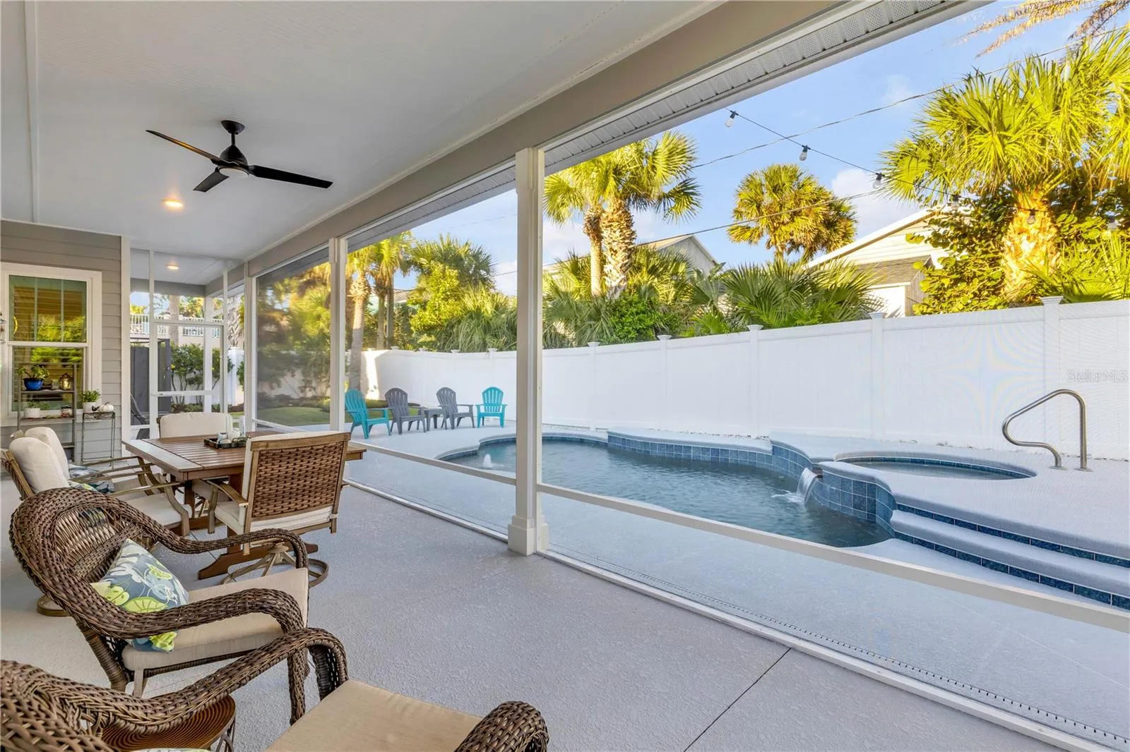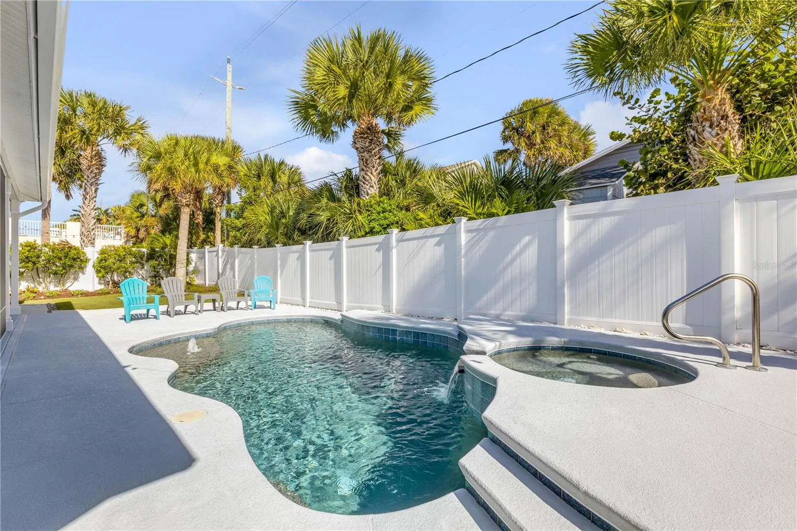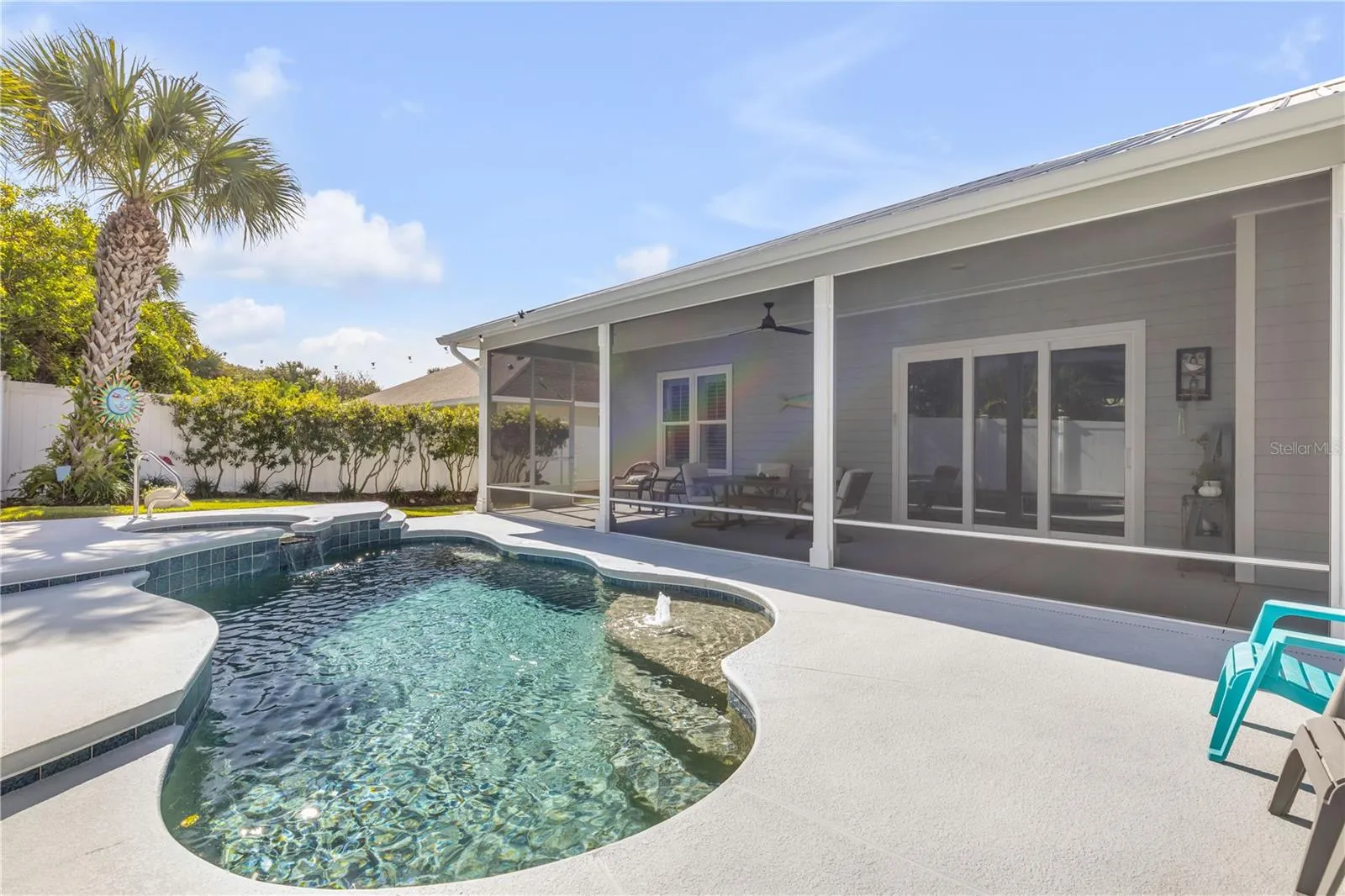 You’re only steps to the ocean beaches in this high-and-dry spacious Hickson Built home, located in the highly sought after New Smyrna Beach Silversands community. This beautifully designed and meticulously maintained pool home welcomes you with soaring 10’ ceilings and 8’ doors. Plantation shutters provide a glimpse of the fenced, resort style backyard oasis featuring a heated saltwater pool, spillover spa, and outdoor shower.