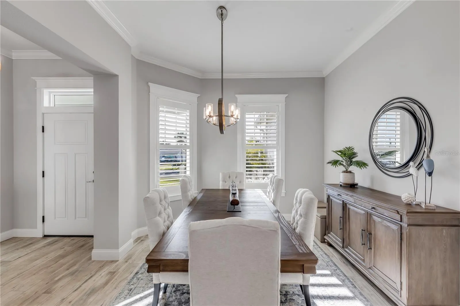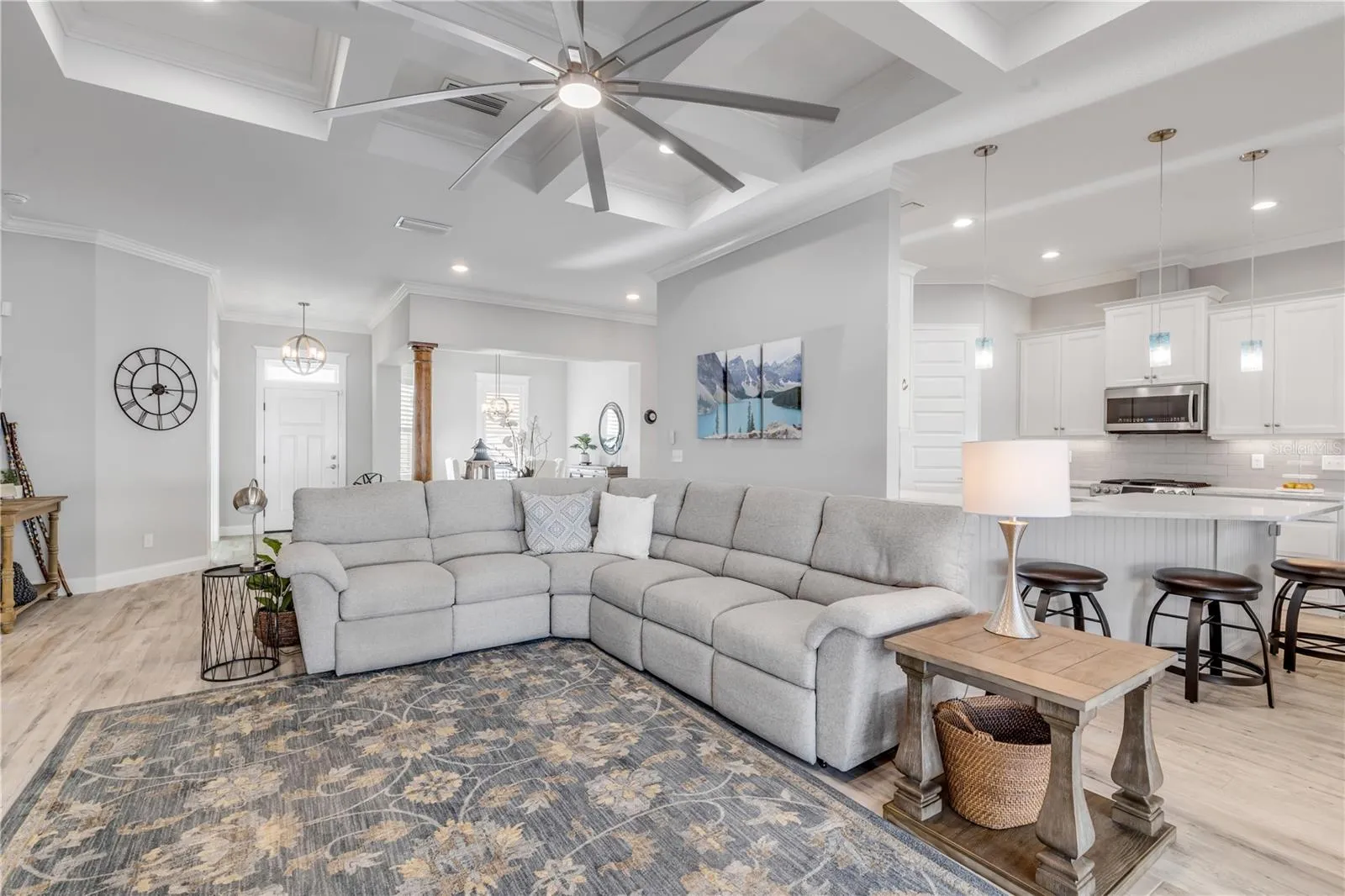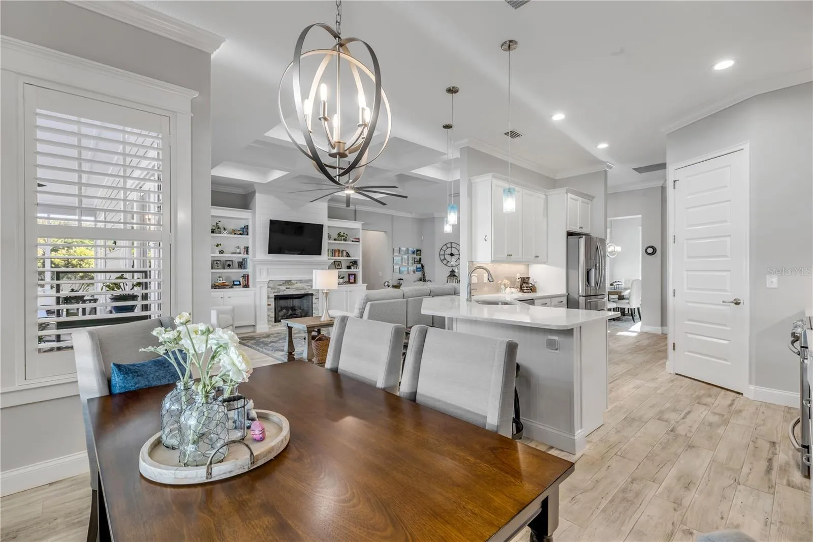 The spacious open floor plan includes a kitchen with walk in pantry, top of the line appliances including a gas range, and quartz countertops. A true Butler’s Pantry offers additional storage, an ice maker, wine cooler, and another office nook. The centrally located living room showcases stunning tray ceilings, a gas fireplace, and custom built ins. The open dining area is perfect for entertaining family and friends.