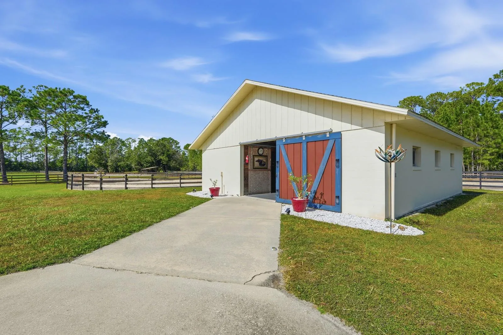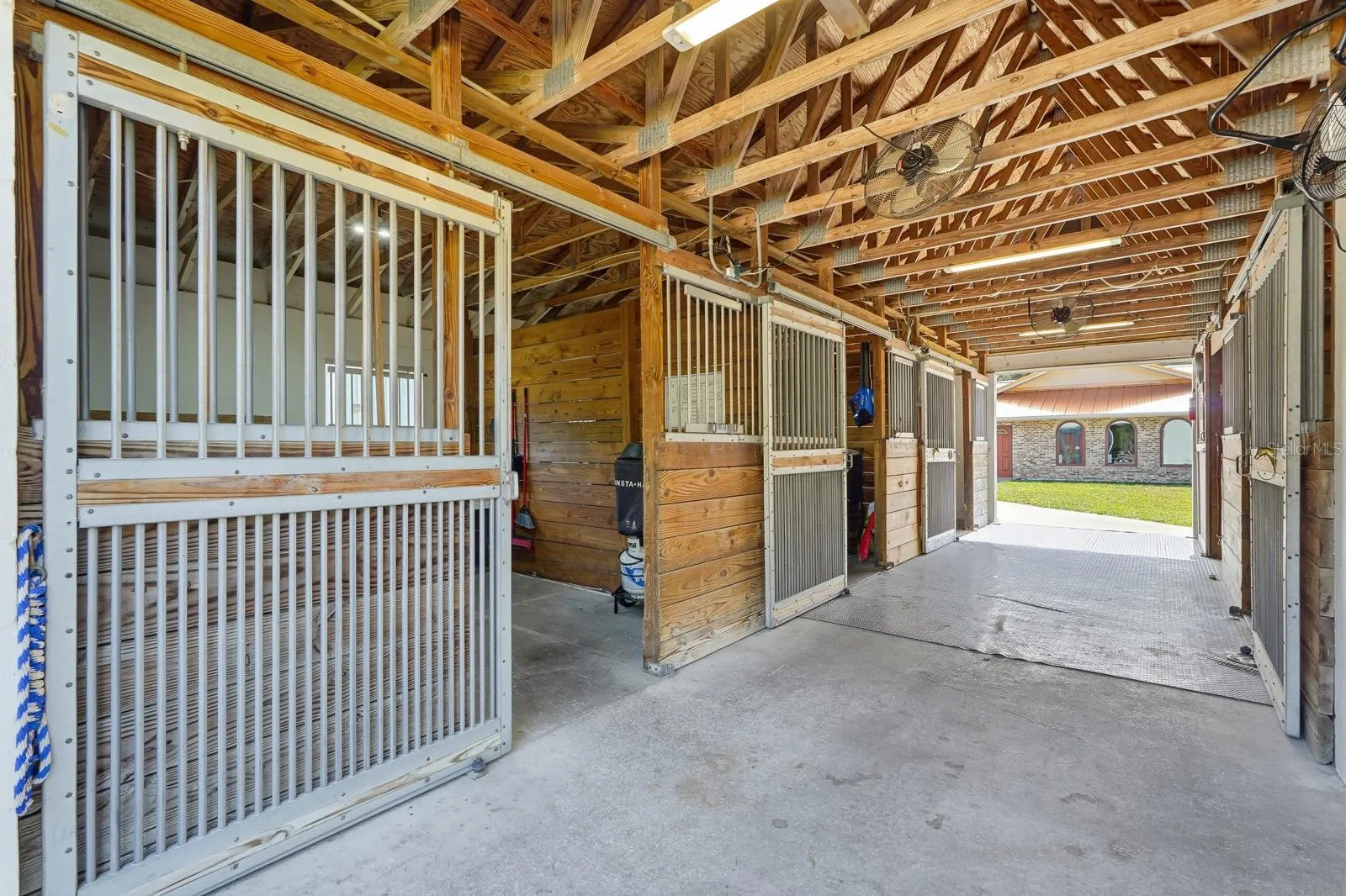 Stepping into the center aisle of your block built barn, you have 4 stalls equipped with floor mats, stall fans, windows out of the back of the stalls, and lighting. The barn, indoor wash rack and outdoor wash rack also have cold and hot water! A large tack room will allow for plenty of barn storage space! The barn and shed were also freshly painted in 2022.