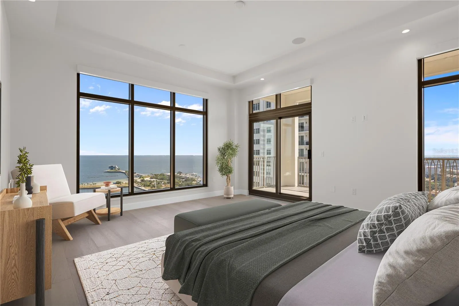 One or more photo(s) has been virtually staged. Now complete and move-in ready, this full floor home at The Nolen St. Pete offers an exceptional blend of luxury, privacy, and design within a 23-story boutique tower of only 31 residences. The elevator opens directly into a spacious foyer with a storage closet and double-door entry revealing breathtaking views of Old Northeast, Tampa Bay, and the Vinoy Basin. The chef’s kitchen is equipped with Gaggenau appliances, an induction cooktop, double ovens with convection microwave, a Blanco sink, two refrigerators, two freezers with ice makers, a large wine fridge, and an expansive waterfall island with quartz countertops and abundant pantry space. The open living area flows seamlessly to a 38-foot terrace that spans from the living room as well as a second terrace on the south side spanning the primary suite, showcasing sunrise and sunset views. The primary suite offers a spa-inspired bath with a soaking tub, walk-in shower with rain head and bench, dual vanities with LED illuminated mirrors, a makeup station, and an expansive walk-in closet. Both guest bedrooms feature en-suite baths, one guest room featuring terrace access. Additional highlights include a bonus study, powder bath, large laundry room with extra cabinetry, and generous storage throughout. Enjoy resort-style amenities including a saltwater pool and spa, fitness center, club lounge, fire pit area, outdoor grill space, and concierge service. The residence includes a private two-car garage within the parking structure and climate-controlled storage unit with its own mini-split AC. This is your opportunity to own a brand-new, never-lived-in residence at one of downtown St Pete’s best locations. The Nolen is a thoughtfully designed, NGBS-certified green building, offering an elevated, maintenance-free lifestyle just steps from Beach Drive, waterfront parks, marinas, and downtown’s best dining and shopping. A new award-winning coffee shop is now open on the ground level — making it easier than ever to enjoy your morning routine or unwind just an elevator ride away. At The Nolen, downtown is downstairs — with the city’s finest restaurants, culture, fitness studios, and entertainment all within walking distance. The Nolen #2001 perfectly blends modern elegance, thoughtful design, and the timeless charm of St. Petersburg’s waterfront lifestyle. Come and view it today!
