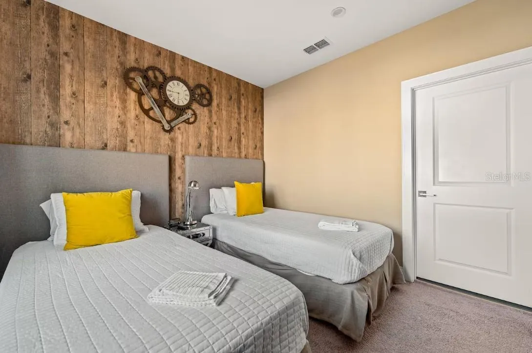 This beautiful 3-bedroom, 3.5-bathroom townhome in Magic Village Resort offers a perfect blend of style, comfort, and location. Fully furnished and move-in ready, this home features spacious living areas and modern finishes throughout. It backs up to the west, offering stunning sunset views from your private patio. Just minutes from Disney, this townhome is an ideal choice for short-term rentals, providing excellent income potential. With its prime location, resort amenities, and relaxing atmosphere, this is the perfect vacation retreat or investment opportunity! Magic Village is a luxury gated community right next to Disney parks! This amenity packed resort offers a swimming pool, gym/fitness center, volleyball, tennis courts, restaurant, on site grocery, and tickets stores. Don’t miss the opportunity to own in this prime location!