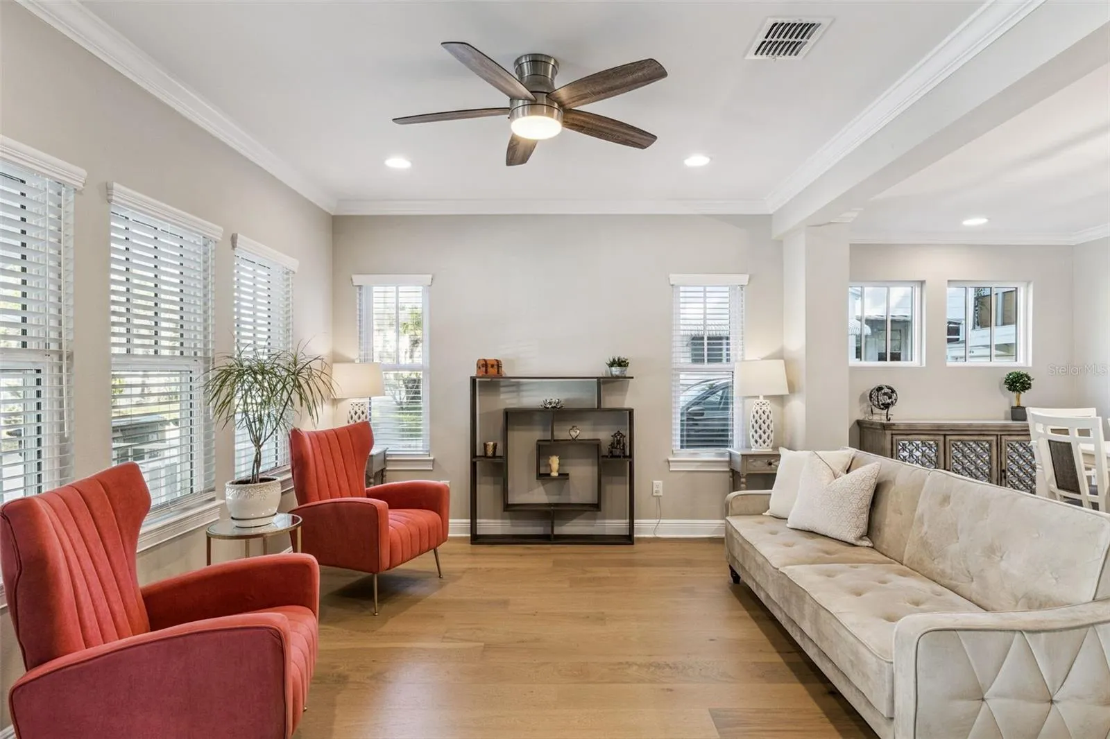 Tucked in the heart of one of Orlando’s most iconic neighborhoods, Lake Eola Heights, this custom 3-bedroom, 2.5-bath home is a modern interpretation of historic charm. Built in 2022, every detail was thoughtfully curated—from wide-plank wood floors and an open-concept layout to finishes that blend timeless character with contemporary comfort. The bright, open kitchen is both stylish and functional, featuring sleek white shaker cabinetry, stainless steel appliances, upgraded lighting, and a picturesque window over the sink. Upstairs, you’ll find all three bedrooms, two full baths, and a convenient laundry room—creating a private retreat separate from the main living spaces. The primary suite offers dual walk-in closets and a private balcony with stunning views of the downtown Orlando skyline—perfect for morning coffee or evening unwinding. Just five blocks from Lake Eola Park, the weekly Farmers Market, and some of the city’s best dining and entertainment, this home pairs neighborhood tranquility with an unbeatable downtown lifestyle. With no HOA and a location that captures the best of Orlando’s historic and modern energy, 210 Hibiscus Ct is truly where classic character meets contemporary living.
