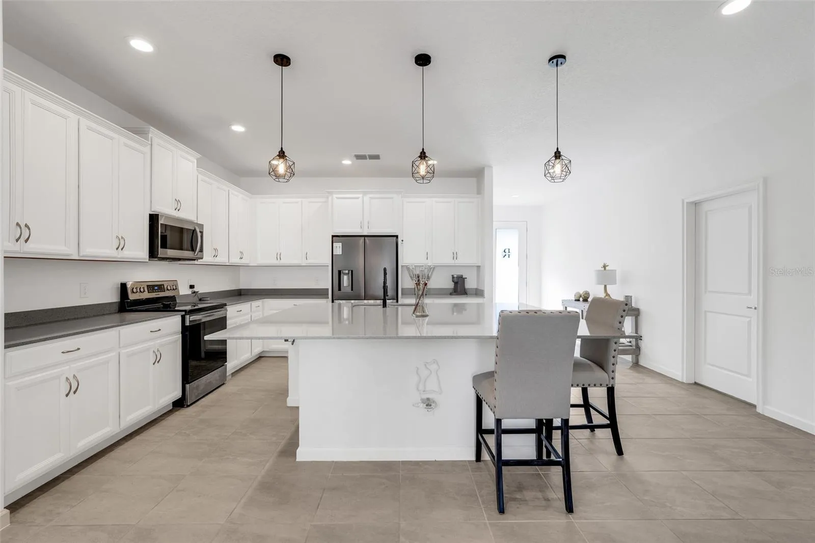 Step into this beautifully designed home where comfort, style, and functionality come together seamlessly. With 4 spacious bedrooms, 3 full bathrooms, a versatile flex room, and a covered lanai, this layout is perfect for families of all sizes and lifestyles. The heart of the home is the luxurious chef-inspired kitchen, featuring an oversized island that flows effortlessly into the expansive dining area and great room. It’s the ideal open-concept space for entertaining, hosting gatherings, or simply enjoying quality time with loved ones. Ceramic flooring throughout the main living areas adds a sophisticated and low-maintenance touch. Located in a vibrant community, residents can enjoy a resort-style pool with cabana, playground, soccer field, and a charming lakefront gazebo perfect for weekend picnics or watching Florida’s breathtaking sunsets. This home offers the perfect blend of comfort, luxury, and community living. You’ll fall in love the moment you walk in.