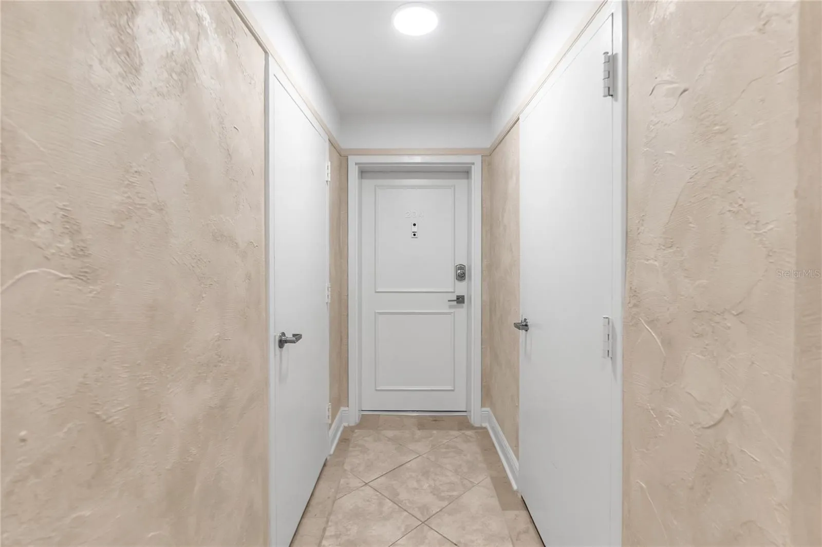 An inviting entry opens to a spacious, open-concept great room with defined living and dining zones that transition naturally to a private covered balcony with unobstructed Gulf views—perfect for sunrise coffee, afternoon reading, or golden-hour breezes. Cohesive, low-maintenance flooring and a calm, neutral palette set an elegant foundation for any design style, while updated designer lighting and hardware add a polished feel.