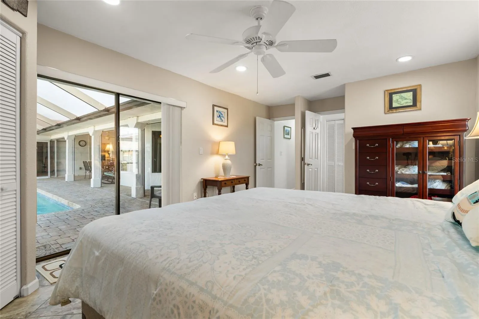 CALLING ALL SERIOUS BOATERS! – Check out this 4 bed/3 bath, waterfront home w/pool in Port Charlotte. The property offers 100ft of waterfront, private dock w/12,500 lb boat lift & nearly instant access to Charlotte Harbor. You need to see this home if quick, sailboat access to open water is at the top of your list. It’s located on a wide canal in the Edgewater area & you can reach Charlotte Harbor in under a minute from your backyard. Inside, the home has a spacious, open floor plan w/vaulted ceilings and wood-look laminate floors in the living room, dining room and family room with porcelain tile in the bedrooms. Centrally-located kitchen connects both living areas. Kitchen is updated w/white cabinetry, stainless-steel appliances, solid-surface counters, and marble-look subway tile that give it a crisp and contemporary feel. The adjacent breakfast nook looks straight out to the pool and canal. The family room offers built-ins, recessed lighting, and walk-out access to the summer kitchen. The master suite has an en-suite bath w/private patio plus access to the lanai. Two walk-in closets and a large dressing room that more than doubles the closet space add flexibility. Don’t need that much storage, consider using it as a home gym, hobby room or art studio. It could even be used as an additional bedroom, if needed. With a guest bath just outside the dressing room, it works for guests as well. The split bedroom layout boasts three guest bedrooms on the opposite side of the home. Guest rooms share a hall bath. One guest room has walkout access to the lanai while another has a private patio w/canal & harbor views. Sliding glass doors from almost every room open to the lanai extending the living space outside. Enjoy true indoor/outdoor, Florida living here. The brick paver patio surrounds the in-ground, heated pool. Relax under the shade of the covered areas, soak up some Florida sun on the large pool deck or enjoy dining al fresco by the summer kitchen. There’s room for it all out here! Just beyond the pool cage is the oversized dock (rebuilt in 2021) w/12,500 lb boat lift. Water & electric hook-ups are available dockside. Other amenities include a Decra metal roof, two hot water heaters (including a new 50-gallon one), two A/C systems, full hurricane protection w/electric roll-downs on lanai, Bahama shutters on side and panels for the rest. There’s also an RV concrete pad w/30-amp connection. Updates include NEW pool heater (2024), NEW Hayward ColorLogic pool light (2024), NEW pool filter (2023) & NEW dishwasher (2022). Now’s your chance to own your waterfront dream. Step out back, lower the boat and you’re on your way. Make an appointment today!