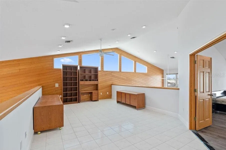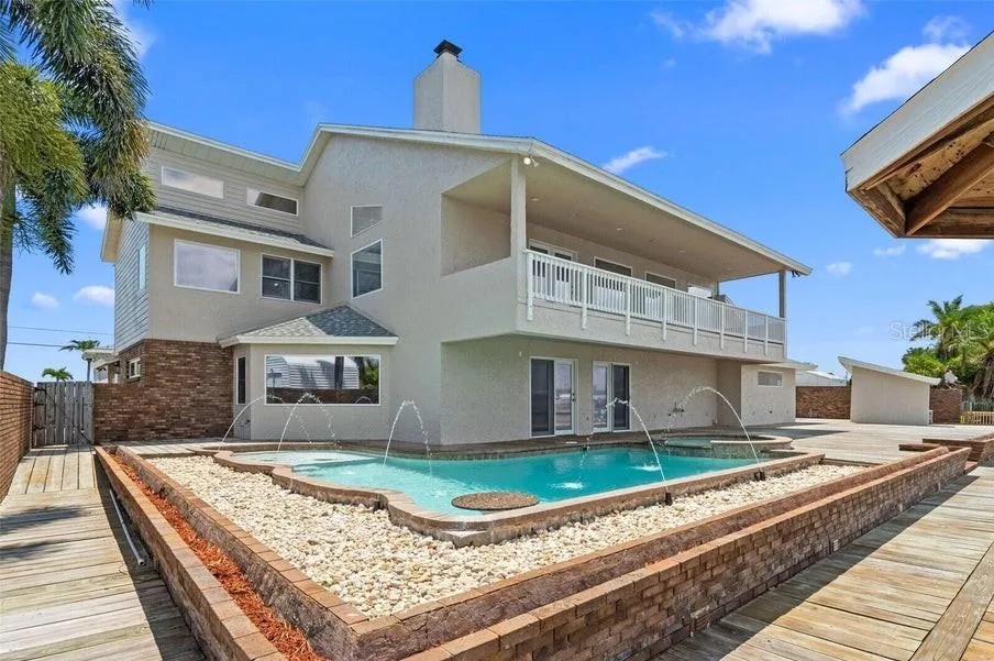 One or more photo(s) has been virtually staged. One or more photo(s) was virtually staged. WELCOME HOME TO EXCLUSIVE MILFORD POINT MERRITT ISLAND! An absolute tropical boater’s paradise! This stunning canal front single family home offers 5 bedrooms 4 full bathrooms and an open floor plan designed for spacious coastal living. Stunning Kitchen equipped with new stainless appliances. Features include 2 primary suites—one on the first floor and another upstairs with a loft overlooking the main living area, a private balcony overlooking pool and Pelican Creek. One of the downstairs bedrooms is perfect for in-law quarters. The garage is fully equipped custom cabinets and 2 work benches & oversized driveway. Additional highlights include a newer roof, 2 newer HVAC units, two wood-burning fireplaces (one on each level) and an expansive 1,531 sq. ft. dock spanning the full width of the property. Outdoor living at its finest with multiple deck space, a sparkling pool, and a relaxing spa. This property offers direct canal access with no bridges, making it a true boater’s dream!