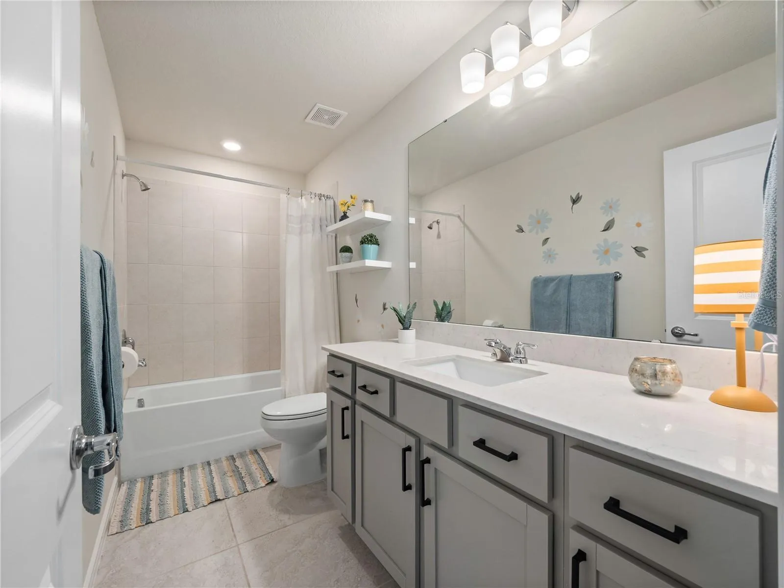 Welcome Home to a newer Pulte Home featuring 4 bedrooms and 3 bathrooms in Belle Haven. Features the Coastal Interior 18’7″ High Ceilings, Ceramic tile throughout downstairs entertainment area. Gourmet Kitchen with Grey 36″ Designer Cabinets with Crown Molding and Blanco Matrix Quartz Countertops with Large Island, All Whirlpool Stainless Steel Appliances, Moen faucets. Spacious Primary Suite with a walk-in closet, A Spa like Bathroom with Double sinks. The upstairs Loft offers a large entertainment area for the Family. Laundry Room upstairs. This smart Home has Cat 6 wireless access points, HOA included Internet & Cable. Energy Efficient Low E Dual Pane Windows, Low HOA, and a Resort-like Community Pool and Cabana. Original Pulte Construction (2023) Warranty, Covered Lanai with Privacy fenced in back yard. Close to Champions Gate, Shopping, Dining, Posner Mall, Movie theatre, Publix, schools. Theme Parks. Easy access to Orlando, close to I-4 and 429.