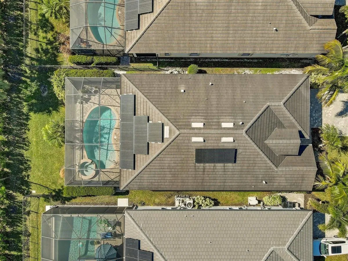 Spacious 4 Bedroom, 3 Bathroom Home in Gated Mirada Community. ENERGY EFFICENT HOME with SOLAR PANELS and the garage is equipped with a hard wired Level 2 EV CHARGER. Home presents well with HIGH CEILINGS, CROWN MOLDING, SPACIOUS OPEN FLOOR PLAN that seamlessly connects the kitchen, living room, and dining area—perfect for everyday living and entertaining. The kitchen features SHAKER CABINETS, GRANITE COUNTERTOPS, DRY BAR and ample countertop space for cooking up your dainties. TILE flooring flows throughout all main living areas, with carpeted bedrooms for added comfort. The large primary suite includes TWO WALK-IN CLOSETS with an EN-SUITE BATHROOM complete with a GARDEN TUB, WALK-IN SHOWER, DUAL SINKS set in GRANITE VANITIES and PRIVATE WATER CLOSET. Built strong with SOLID BLOCK construction, HURRICANE SHUTTERS and topped with a CONCRETE TILE ROOF, this home offers long-lasting durability and peace of mind. Enjoy maintenance-free living in this secure GATED COMMUNITY where LAWN CARE, garbage collection and IRRIGATION is provided.