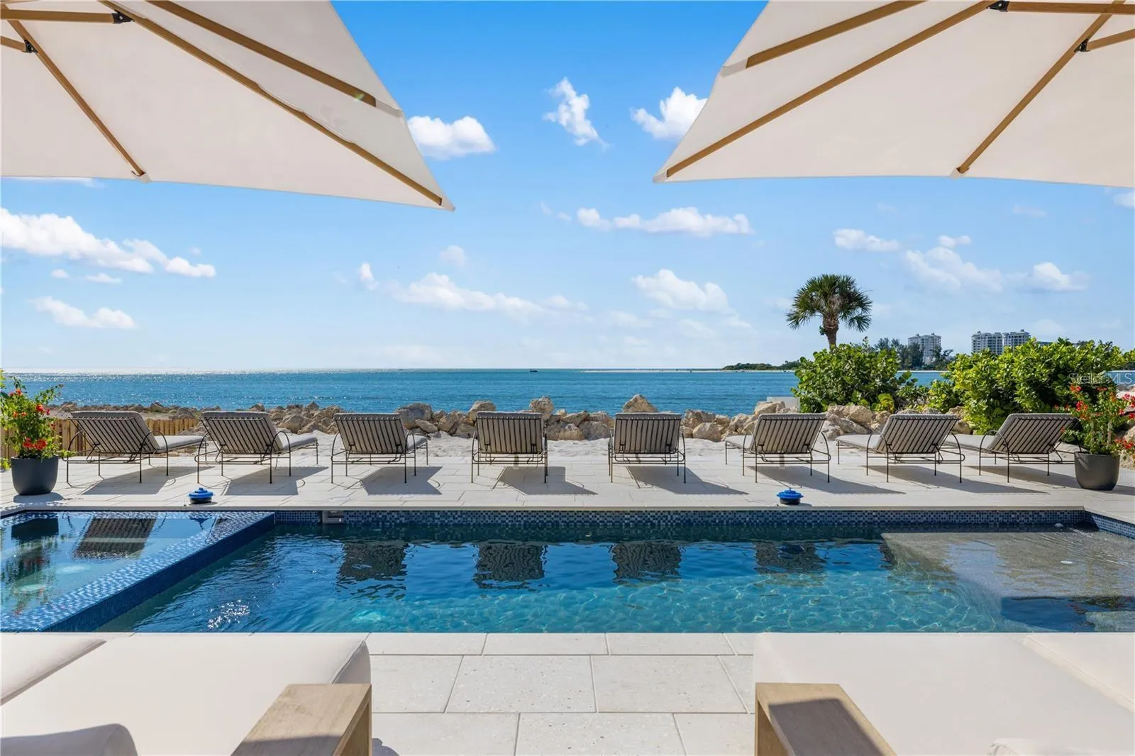 Experience private beachfront coastal luxury at this one-of-one Siesta Key home, thoughtfully curated for comfort, style, and entertainment – by Pham Development. Perfectly positioned off the Gulf, with gorgeous ocean views throughout the rooms – you can watch a world-class sunset view from your master bedroom. Spanning over 6,468 square feet under air and 9,080 total square feet, this exquisite residence captures the essence of resort-style waterfront living on more than half an acre of pristine Gulf-front land. Be at ease with a surrounding elevated riprap shoreline and the imported rocks, offering both protection and privacy.
