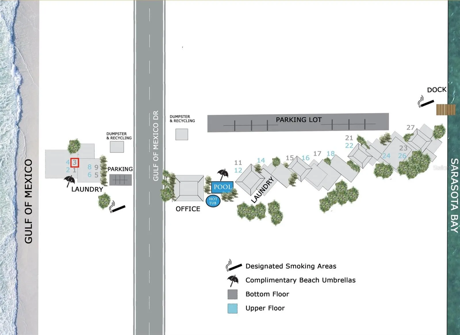 Beach Castle Resort is one of the few communities on Longboat Key offering daily, weekly, or monthly rental flexibility, giving owners the freedom to maximize both personal use and rental income. The community’s beach-to-bay amenities include deeded beach access, a sundeck with heated swimming pool and spa, barbecue grilling areas, a fishing pier, and a day dock for boating enthusiasts (first-come basis, no overnight docking). Lush tropical landscaping and well-maintained grounds create a relaxing boutique-resort environment.