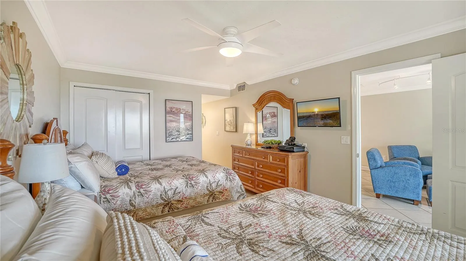The split-bedroom plan enhances privacy for owners and guests. The primary suite enjoys beautiful Gulf views, private patio access, and a peaceful setting perfect for morning coffee or sunset unwinding. A comfortable second bedroom and full bath complete the guest wing.