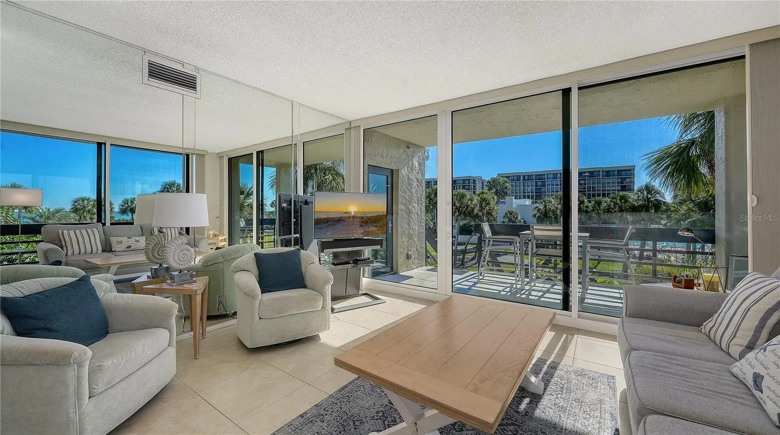 Step into a bright, inviting coastal retreat just moments from the sand at Beachplace on Longboat Key. This beautifully furnished first-floor residence in Building 3 offers true walk-down convenience from the private wraparound terrace—an effortless way to enjoy the Gulf-front lifestyle. Designed for comfort and ease, the interior features porcelain tile flooring throughout, plus new impact windows and walls of sliders installed in 2021–2022, creating a light-filled setting that feels connected to the outdoors.