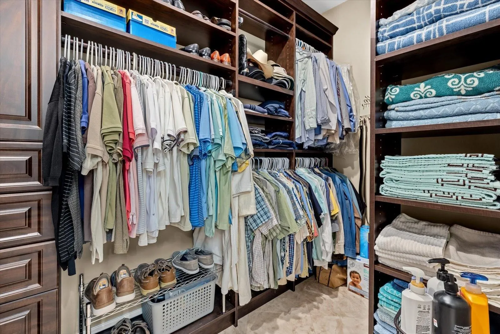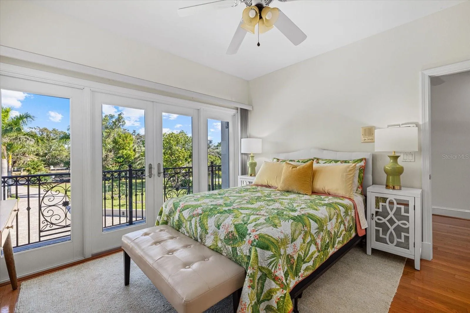 Multiple ensuite bedrooms ensure comfort and privacy. The main-floor guest master offers bay views, patio access, and a spa bath with jacuzzi. Upstairs, two guest suites include private patios, walk-in closets, and upgraded storm doors. The primary suite has a commanding 100-degree bay panorama, private terrace, spa bath with instant-hot water, and extensive custom closets.