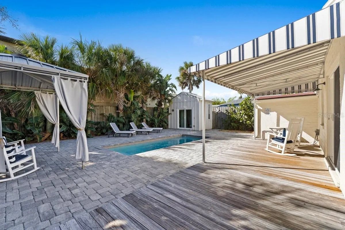 Under contract-accepting backup offers. Bright 1940s beach cottage with private pool and cabana just steps from the ocean! Nestled along scenic A1A in the historic motor court of Old St. Augustine Beach, this charming home and known as the Anastasia Lodge Cabana. Sits on the Golden Mile, walking or biking distance to local restaurants and minutes from historic downtown.