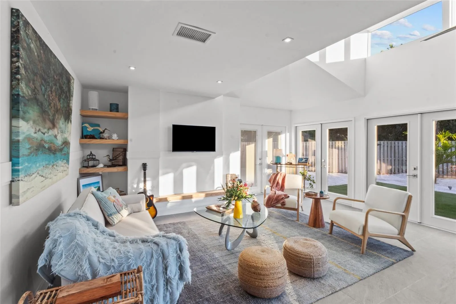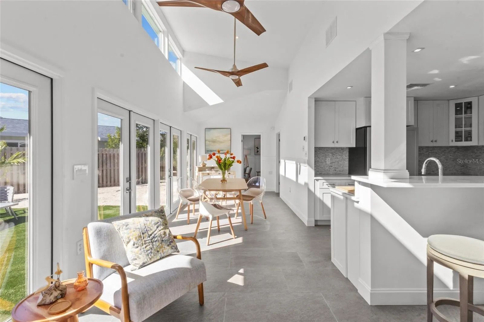 From the moment you step inside, you’ll feel the coastal modern bliss. Enjoy the clean, modern lines, vaulted ceilings, and stunning stone tile floors, all bathed in gorgeous southern sun light. The upgraded kitchen and bathrooms sparkle with new features, complemented by new appliances.