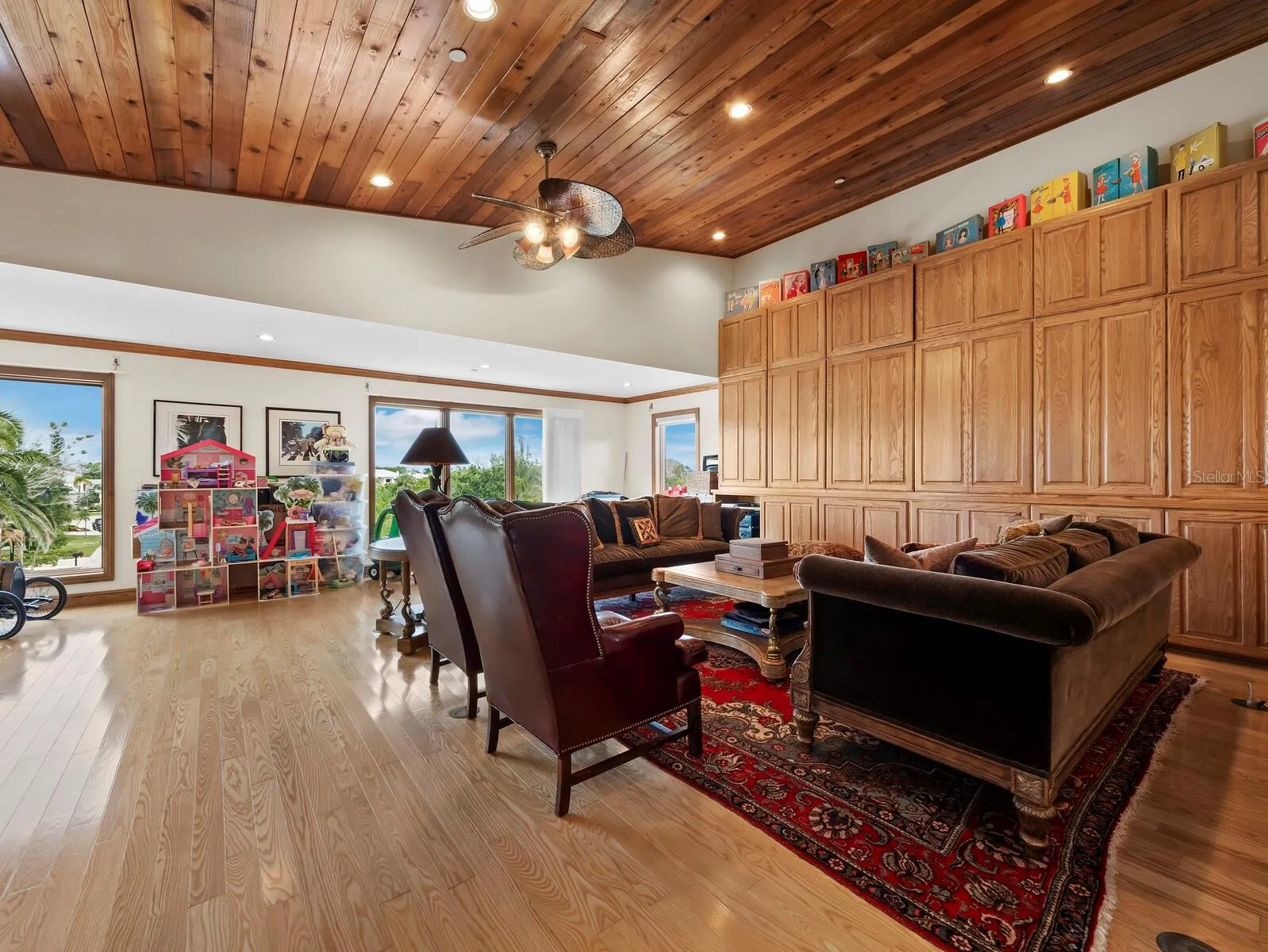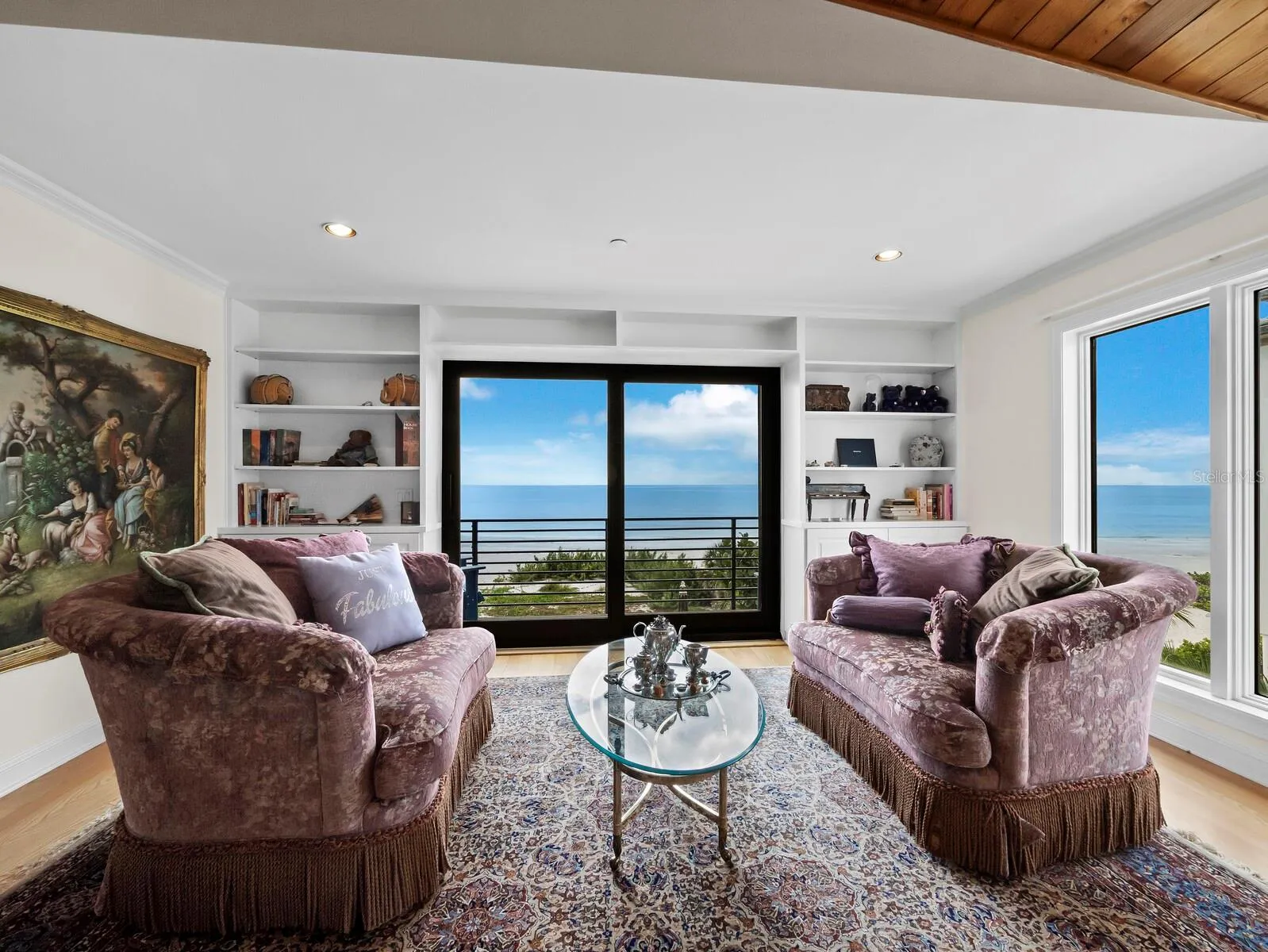 Where the sky opens wide above the Gulf and the shoreline runs uninterrupted, this extraordinary 12,000+ sq. ft. estate stands with a presence that defies comparison. Set on nearly 200 feet of pristine beachfront, the residence is elevated on pilings and wrapped in walls of glass that pull the Gulf’s horizon into every major living space. Inside, soaring cedar ceilings, exposed trusses, and dramatic lines create a sense of volume and warmth that is both refined and inviting. The great room unfolds beneath grand architectural beams and transitions effortlessly to expansive terraces above the sand. A richly crafted lounge with custom bar and billiards area brings a club-like sophistication to the home’s entertainment spaces. The extraordinary chef’s kitchen commands attention with custom inlaid cabinetry, dual oversized islands, professional-grade appliances, and a hidden pantry—ideal for both catered events and everyday living. The second-floor primary suite serves as a private escape with Gulf views, generous sitting area, and a spa-inspired bath. Additional bedroom suites offer privacy for guests, while flexible spaces—including offices, fitness room with sauna, and bonus areas—accommodate a variety of lifestyles. An elevated pool and spa overlook the beach, complemented by multiple decks and outdoor living areas that capture sunrise, sunset, and the sound of the surf. With two elevators, multi-car garage, and exceptional craftsmanship throughout, this is a residence designed for those who seek scale, presence, and true Gulf-front living.