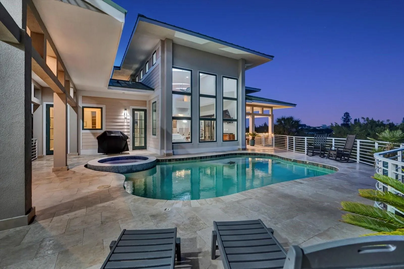 Discover an extraordinary lifestyle in this magnificent estate, inspired by the legendary architect Frank Lloyd Wright and built in 2016. Spanning over 7,600 square feet, this architectural gem is nestled on 2.45 acres at the tip of Cedar Island, presenting an impressive 850 feet of water frontage along the Intracoastal Waterway. Experience unparalleled quality in construction, enhanced by breathtaking water views and refreshing ocean breezes that fill the air. Step inside to find a bright and airy open floor plan adorned with exquisite stone flooring, complemented by an elevator that connects all three levels. Each room offers stunning vistas of the surrounding waters, creating a serene ambiance throughout. The chef’s kitchen is a culinary dream, featuring top-of-the-line appliances and a striking granite island, perfect for entertaining. The main living area flows seamlessly to a beautiful outdoor space that includes a spa and pool, complete with swim spa jets for ultimate relaxation. Two elegantly appointed guest suites provide a private retreat, ensuring comfort for family and friends. On the first floor, indulge in a state-of-the-art theater room equipped with a 120-inch screen, alongside approximately 2,200 square feet dedicated to recreation and office space. The property boasts a covered dock with boat lift, perfect for aquatic adventures. Additionally, the expansive 1,100 square foot three-bay garage offers ample room for your prized possessions. This exquisite paradise is conveniently located just 1,500 feet from the golden beaches of the Atlantic Ocean, presenting the perfect blend of luxury, privacy, and natural beauty. Experience the ultimate in coastal living!
