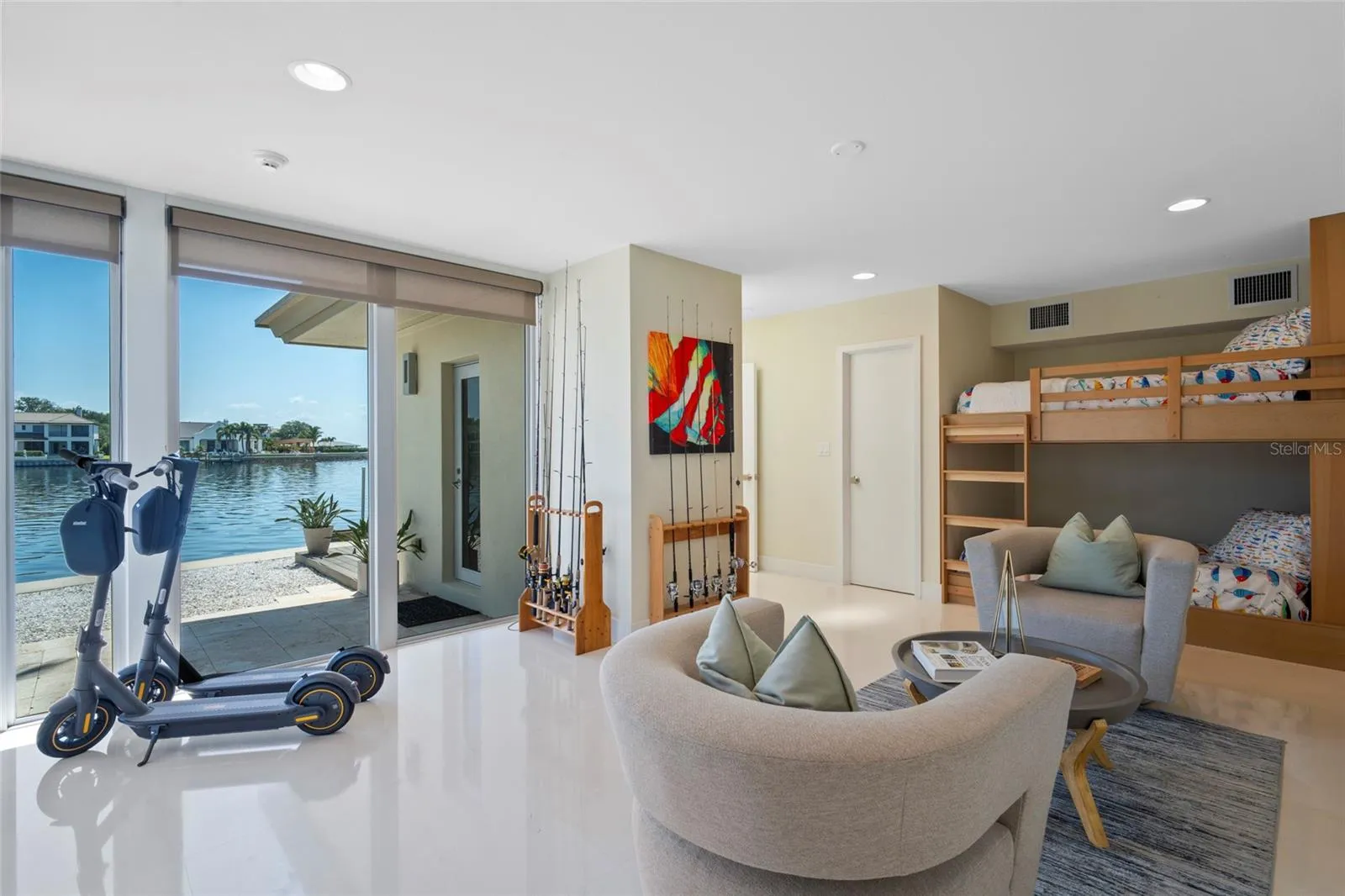 HIGH & DRY WATERFRONT ESTATE ON EXCLUSIVE BRIGHTWATERS CIRCLE with ~200FT of PROTECTED SHORELINE, PANORAMIC BAY VIEWS, and DEEP-WATER DOCKAGE. *Never Flooded* | Located on one of Tampa Bay’s most coveted addresses, this mid-century modern waterfront estate on Brightwaters Circle offers nearly 200 feet of protected shoreline, sweeping Tampa Bay views, and deep-water dockage with no fixed bridges—an exceptional combination for Snell Isle. High and dry on an island cul-de-sac of only ten homes, the property has never experienced flooding, remaining fully dry even during Hurricane Helene. In 2025, the exterior was refreshed with brand new sod in both the front and backyard, enhancing the clean architectural lines and indoor-outdoor living experience. A brand new dock (2025) now anchors the waterfront, offering the same deep-water slip capacity for an 80-foot vessel, plus a lift for a second boat, complete with power and water. Originally designed by Sanford Goldman, protégé of Frank Lloyd Wright, and recommissioned to modern standards, this 4,353 sq. ft. home blends organic materials with refined contemporary living. Floor-to-ceiling impact-rated windows and sliding doors frame breathtaking open-water views, illuminating the open living, dining, and chef’s kitchen. Polished stone floors, stacked stone accents, and original longleaf yellow pine paneling add warmth and architectural integrity. A bonus room/office provides panoramic bay views ideal for work or quiet reflection. The primary suite is a private waterfront retreat with a spa-inspired bath and an exclusive rooftop terrace overlooking Tampa Bay. Three additional ensuite bedrooms offer comfort and privacy for guests or family. Recent updates include two new HVAC units (2025) for enhanced comfort and efficiency. Outdoors, an extended terrace surrounds the water-facing pool, with a dedicated area ideal for a future outdoor kitchen buildout. Brightwaters Circle offers a uniquely peaceful setting while being minutes from the Vinoy Golf Club, downtown St. Petersburg, waterfront parks, fine dining, museums, and top private schools. With convenient access to Tampa International Airport and nearby private aviation, this home provides distinguished waterfront living on one of Tampa Bay’s most desirable streets. A true mid-century masterpiece, preserved, modernized, and ready for its next chapter along the shores of Tampa Bay.