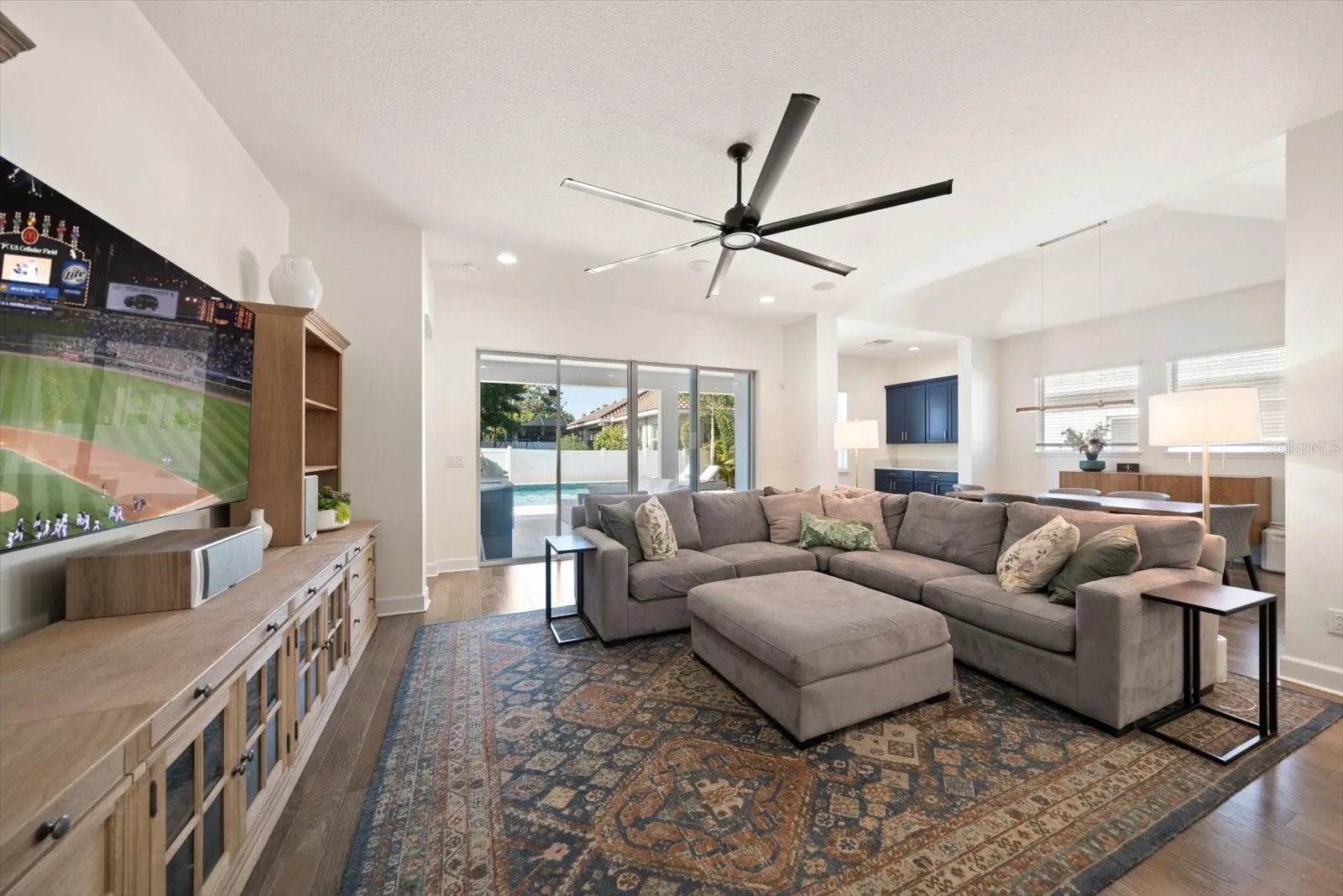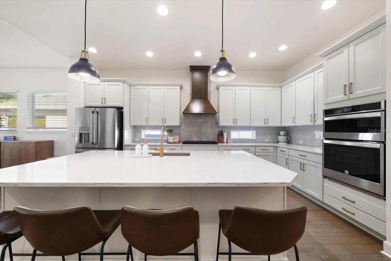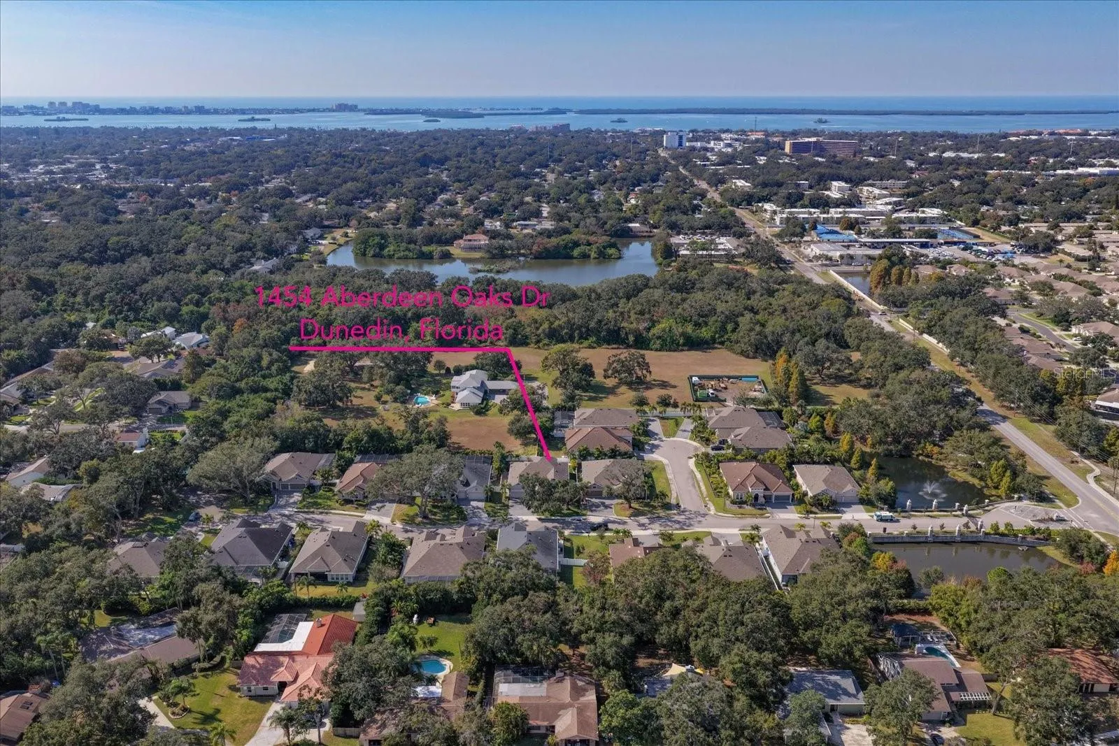 Under contract-accepting backup offers. Welcome to this stunning home built in 2018 and within 15 minutes walk to Downtown Dunedin (3 minutes by golf cart). Nestled in a private, gated neighborhood of just 20 homes, where lush landscaping, mature trees, and impeccable curb appeal create an inviting first impression. Step inside to a bright and open concept floor plan designed for both comfort and style, featuring a desirable split-bedroom layout that enhances privacy. The show-stopping kitchen is the heart of the home, boasting quartzite countertops, stainless steel appliances, a gas cooktop, a walk-in pantry, and a gorgeous custom wood vent hood that adds warmth and character. The kitchen opens to an elegant coffered-ceiling dining area and family room with fabulous hardwood flooring throughout the living area. Expansive sliders in the spacious family room seemlessly blend indoor and outdoor living. The sliders open fully, leading to an entertainer’s dream backyard, featuring a stunning resort-style, salt-water pool with sleek modern finishes, that is both heated and cooled (2025), an outdoor kitchen (2025), and generous deck space for lounging and hosting friends and family. The primary suite is a true retreat, offering a wall of windows overlooking the spectacular pool and the private, fenced backyard. A huge custom walk-in closet and spa-inspired ensuite with double sink vanities elevate the space to luxury status. Three additional first floor bedrooms are equally well-appointed, with plentiful closet space. The single story layout includes a 566 sq.ft. second story bonus room with a full bath and walk-in closet. There are limitless option with this space, making it a perfect in-law suite, playroom, media room, man cave or office! High ceilings, an indoor laundry room, 3-car garage, whole house generator (2025), a 10′ x 12′ storage area over the garage with pull-down staircase provide everyday conveniences with plenty of room for a golf cart to enjoy the quick ride to vibrant downtown Dunedin, its charming shops, restaurants, and waterfront beauty. This exceptional home blends elegance, functionality, and an unbeatable location.