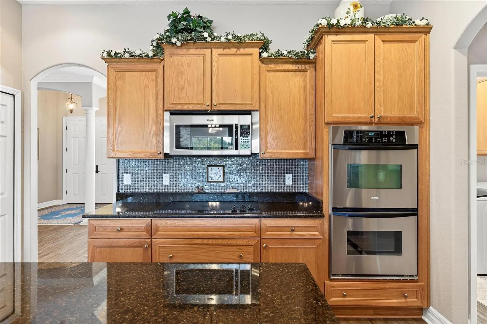 EXPERIENCE THE PERFECT HARMONY OF LUXURY, FUNCTIONALITY, AND NATURAL BEAUTY IN THIS MAGNIFICENT RESIDENTIAL MASTERPIECE ON 5 ACRES OF PRISTINE LAND!!! This masterfully constructed block home offers 5 Bedrooms. 4 Bathrooms, and 3 car garage. The main living floor hosts the sophisticated primary suite positioned for privacy & ease, featuring a tray ceiling, crown molding, separate sitting room, two California Custom Closets, a huge walk-in shower, French doors, a garden tub & plantation shutters. The thoughtfully designed split floor plan offers a bedroom in front of the home & a separate guest wing with 2 large guest bedrooms plus 2 nearby bathrooms. A chef’s kitchen is appointed with a Whirlpool professional appliance suite, cooktop, double wall ovens, granite countertops, & 42″ cabinetry that anchors an open-concept design. A formal dining room includes a tray ceiling, crown molding, plantation shutters, & beautiful lighting. The main floor offers a spacious & inviting layout designed for both quiet relaxation and gracious entertaining with guests. Relax by the warmth of the wood burning/gas fireplace in the exquisite living room, where two large windows offer tranquil views of nature. Upstairs features a guest suite, kitchenette, wet bar, storage room, plus a huge loft that is perfect for a recreation room. Step outside to your exceptional outdoor living area that is beautifully elevated with a generous lanai featuring a stunning resort-style saltwater pool with water features, all set within impeccably landscaped grounds. Adjacent to the pool deck is an impressive, Alfresco summer kitchen with a built-in grill that serves as the hub for an elevated lifestyle. The grounds are an active oasis, featuring a custom-installed putting green for golf enthusiasts and a croquet court for social gatherings & leisurely afternoon. A 40 x 60 “like new” metal building is a versatile & durable steel structure that offers 2,400 sq ft of interior space, which can serve for a wide range of uses. The walls are 18′ tall, center is 24′ tall & has (TWO) 14′ insulated doors. This extraordinary property will not last long. Schedule your private showing today!! At the entrance of this property is an electric gate & 12′ wide driveway with over 7000 sq ft of 4″ thick concrete. The property is bordered by an extensive run of modern Four-Rail (Tan) Vinyl fence which provides a simple but elegant boundary without obstructing views of the land. AC units are BRAND-NEW & the roof was replaced in 2022. THE HOT TUB DOES NOT CONVEY WITH THE HOME BUT MAY BE PURCHASED OUTSIDE OF CLOSING.