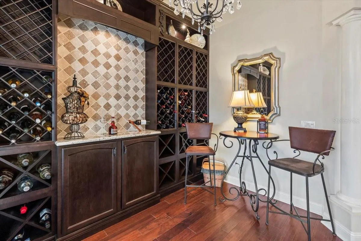 SITED ON PARK-LIKE GROUNDS WITHIN PROMENADE PARKE, THE MEDITERRANEAN-INSPIRED HOME EXTENDS A FORMAL WELCOME THROUGH LANCET ARCHES, STONE COLUMNS AND PAVER DRIVE THAT SPEAK OF SPANISH INFLUENCE. DRIPPING WITH LUXURY DETAILS AND SPLENDID OUTDOOR LIVING THIS WATERFRONT ESTATE IS IMPRESSIVELY SITUATED ON THE WATER! DOUBLE LEADED GLASS ENTRY DOORS OPEN TO ELEVATED CRAFTSMANSHIP WITH LAVISH FINISHES THAT CATER TO THE EXPECTATIONS OF TODAY’S LUXURY BUYER. IMMEDIATELY GREETED BY 10 FOOT CEILINGS AND AN OPEN, AIRY FLOOR PLAN THAT FEELS BOTH GRAND & WELCOMING. AT THE CENTER OF THE AMENITY SUITES IS THE WINE ROOM, THAT PLACES YOUR SPECIALTY WINES ON DISPLAY AND PROVIDES A FOCAL POINT AND SIMULTANEOUSLY CREATES A MEMORABLE SOCIAL EXPERIENCE WHILE ENTERTAINING. BEYOND THE DEN WITH A GAS, STONE FIREPLACE IS THE OUTDOOR LEISURE ROOM VISIBLE THROUGH WALLS OF GLASS. THE 1,000 SQUARE FEET OF COVERED OUTDOOR LIVING IS EQUIPPPED WITH A SUMMER KITCHEN, TV & BAR, A LINEAR FIRE PIT & GRILLING STATION,