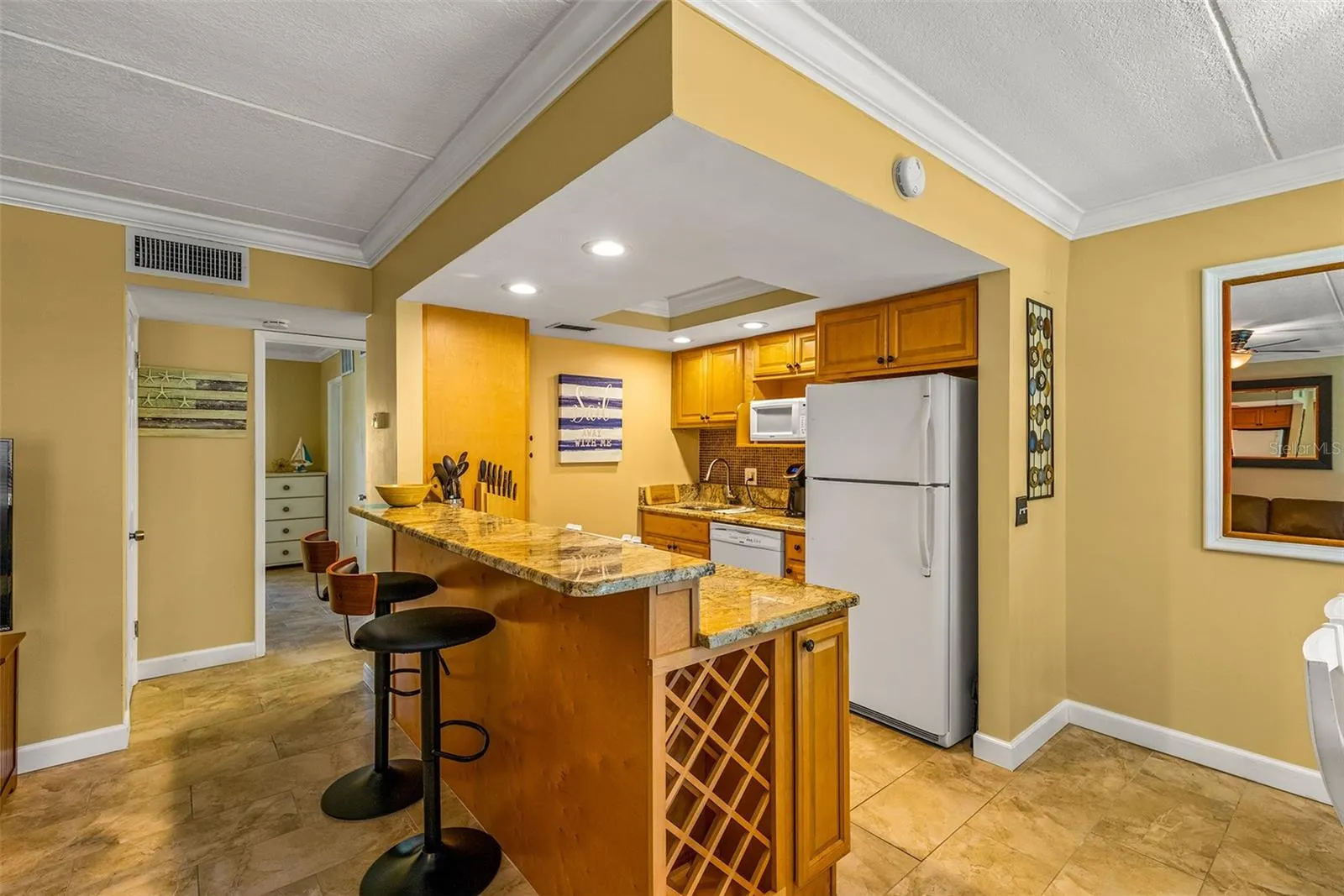 Pete Beach, this cozy unit has an inviting open floor plan. Upon entering, you step into the bright living room connected to the kitchen and dining area. The bedroom features a
