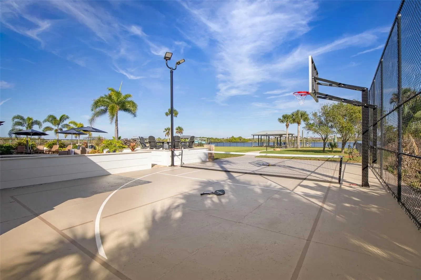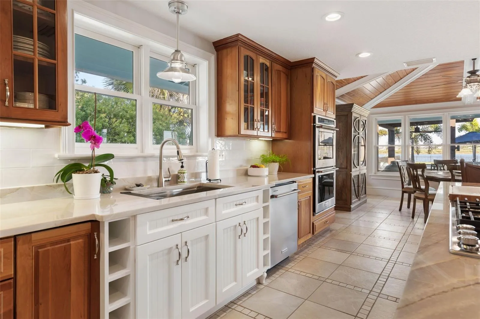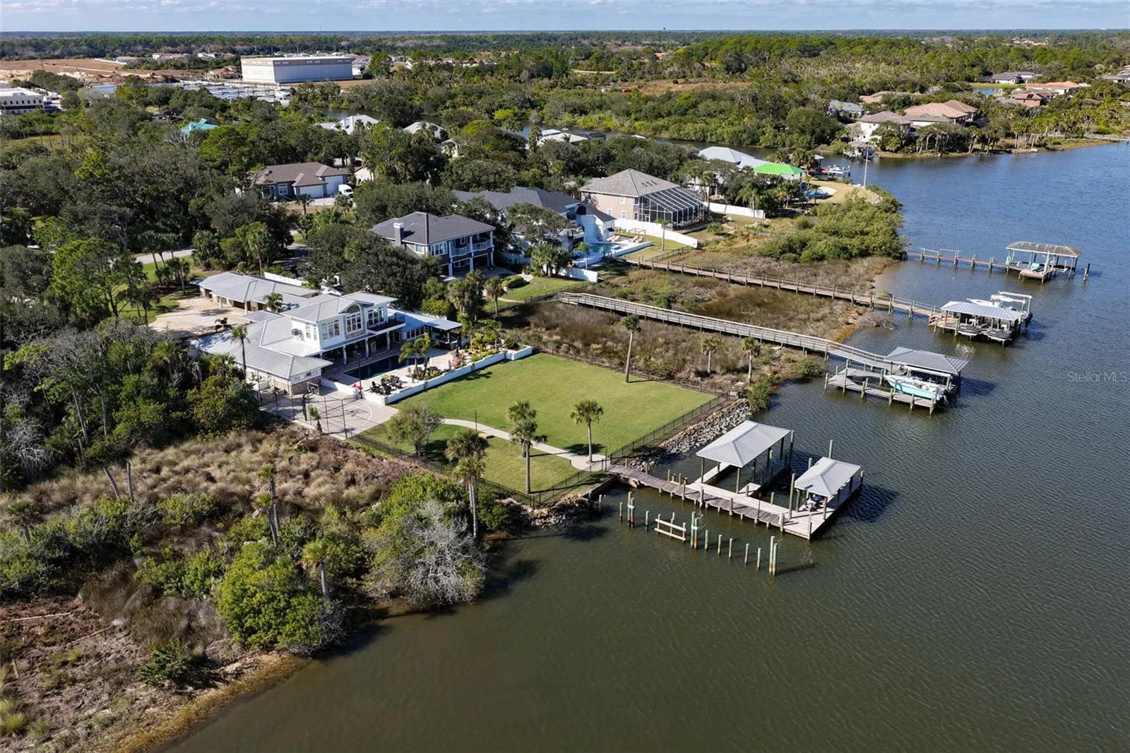 RIVERHOUSE is a newly renovated 4821 sf executive intracoastal estate with over 7498 sf under roof blending modern luxury with resort-style living. Situated on a 1-acre manicured fenced lot in the preferred north Lambert Ave area, this home offers a private mini marina, 5 car auto-salon, and a back yard oasis built for unforgettable gatherings. Step inside to find 6 spacious bedrooms, 5.5 bathrooms, lavish master suite with soaker tub and steam shower. The gourmet kitchen is a chef’s dream with new appliances, Quartzite counters and sinks. The spacious game room offers a wet bar, wine cooler, pool table, office and ample seating for endless entertainment. Upstairs you’ll find a spacious private ensuite with its own deck perfect for guests or extended family. Outdoor the magic continues with a huge sparkling newly renovated pool featuring a swim shelf, pebble finish and fountains. Surrounded by lush landscaping, accent lighting, fire pit, and fire features, the scene feels like a luxury resort. Entertain in style under the covered lanai with over 400 sf of outdoor living space and fireplace or enjoy the covered outdoor kitchen and bar with gas grill, green egg, under cabinet fridge and sink. On your way to the marina, you’ll pass through a lighted half-court basketball and pickle ball court, perfect for nighttime entertainment. The lighted path delivers you to a dock which will accommodate a 50’ yacht, covered 28’ boat slip, two jet skis lifts, a cozy sitting area with ample lighting and a 50-amp marine service. Perfect for sunrise mimosas. For the car enthusiast, the 1432 sf five car garage is climate controlled with its own power service, sink, urinal and LED lighting. The ultimate auto salon and man cave. Both the garage and the house are equipped with generator service connection for your convenience during unlikely power outages. With no HOA located on coveted Lambert Avenue, this estate offers both freedom and exclusivity. This is more than a home, it’s a legacy resort designed for entertaining, relaxing and raising generations on the water. Opportunities like this come once in a lifetime. Schedule your private showing today.