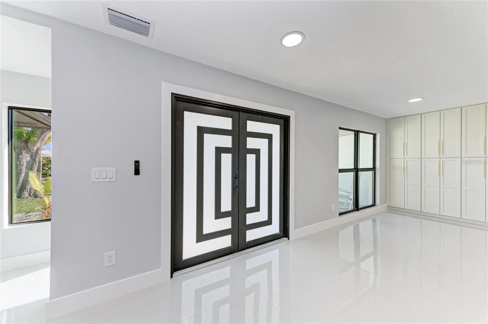 Each bedroom offers NEW CUSTOM BUILT-IN CLOSETS, while all bathrooms have been FULLY REMODELED WITH CONTEMPORARY FINISHES, blending luxury and functionality. The PRIMARY SUITE provides private pool access and a SPA-INSPIRED BATH, delivering a peaceful retreat. Importantly, the home DID NOT EXPERIENCE FLOODING, offering added peace of mind for waterfront buyers.