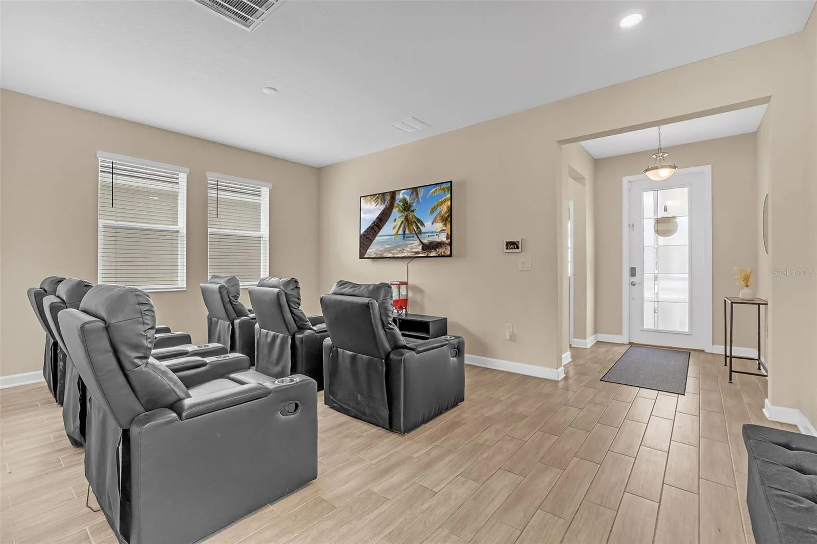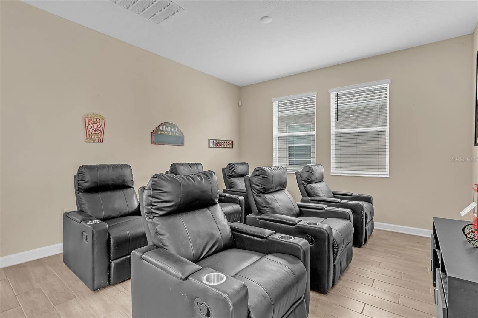 Out back, relax on the rear patio overlooking a tranquil pond—an ideal spot to enjoy spectacular Florida sunsets.
